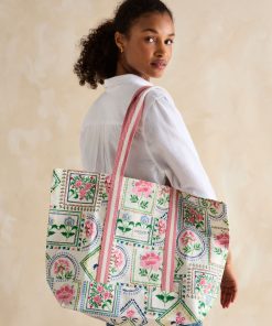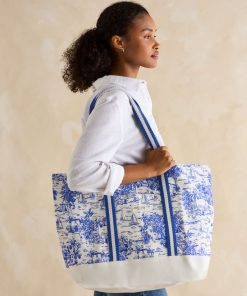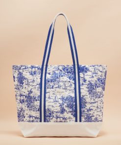 Joules Women’s Promenade Blue & White Toile De Jouy Canvas Beach Bag | Blue & White Toile De Jouy