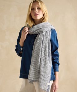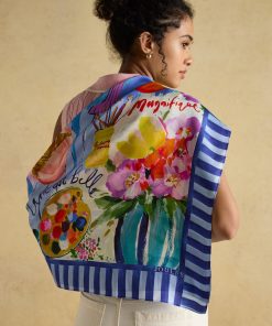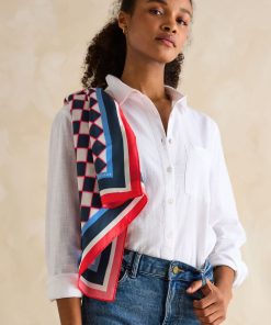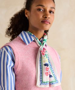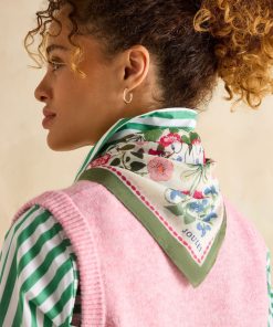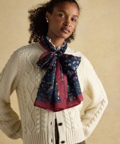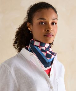 Joules Women’s Highgrove Cream Tile Print Skinny Printed 100% Silk Scarf | Cream Tile Print
