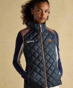 Joules Women’s Official Blenheim Navy European Championship Showerproof Diamond Quilted Gilet | Navy