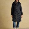 Joules Women’s Cherington Black Showerproof Longline Padded Coat With Faux Fur Hood | Black