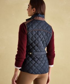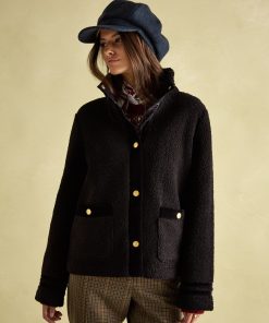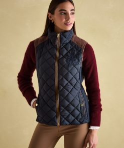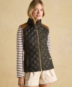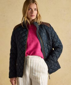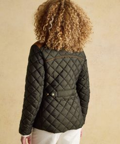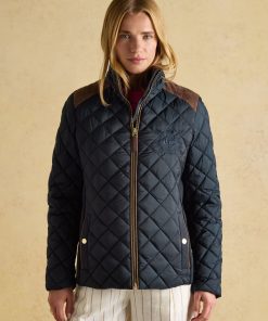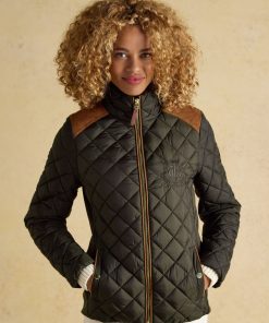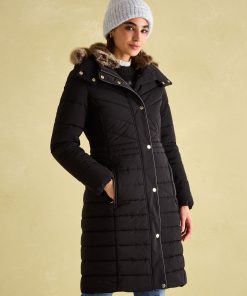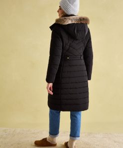 Joules Women’s Cherington Black Showerproof Longline Padded Coat With Faux Fur Hood | Black