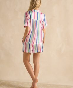 Joules Women’s Natalia Multi Stripe Satin Short Pyjama Set | Multi Stripe
