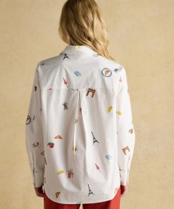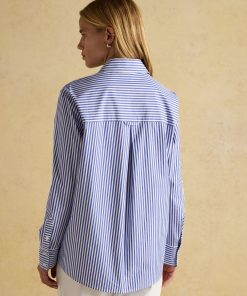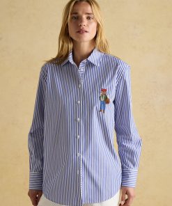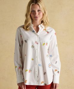 Joules Women’s Amilla Blue & White Embroidery Longline Relaxed Fit Shirt | Blue & White Embroidery