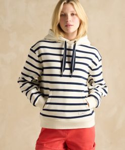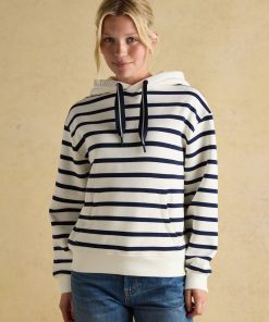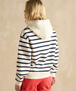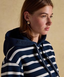 Joules Women’s Milbourne Navy & White Striped Cotton Rich Hoodie | Navy & White Striped Cotton Rich