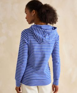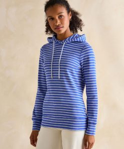 Joules Women’s Marlston Blue Striped Cotton Rich Slim Fit Hoodie | Blue Striped Cotton Rich