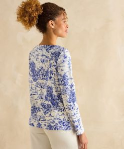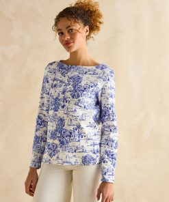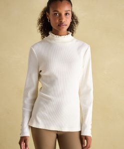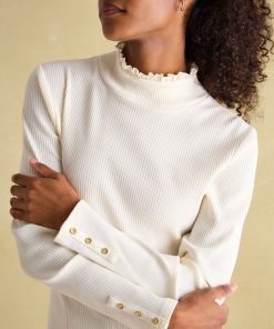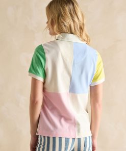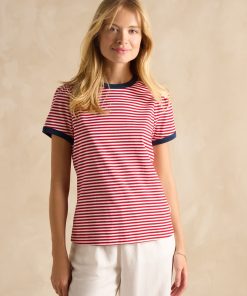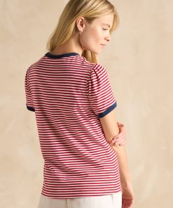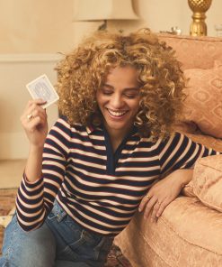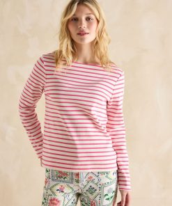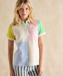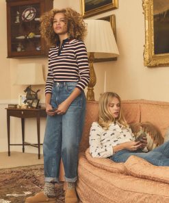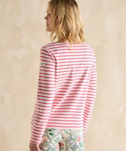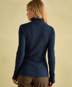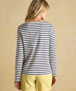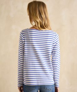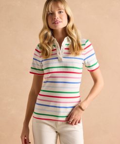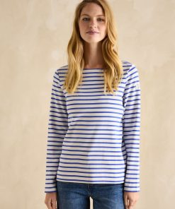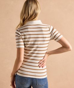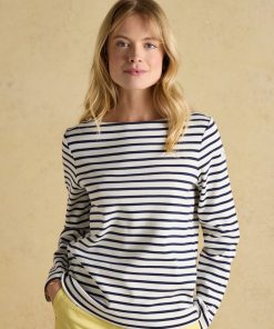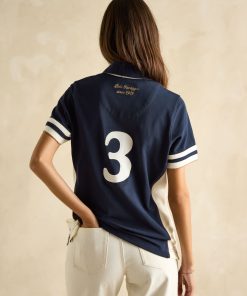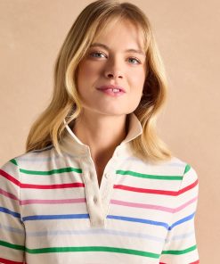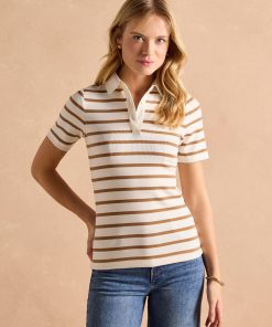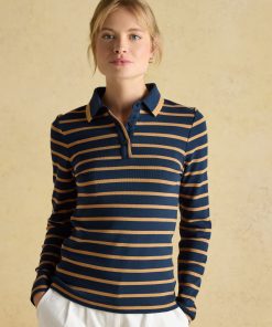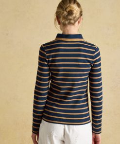 Joules Women’s Fairfield Navy Blue & Brown Ribbed Long Sleeve Striped Polo Shirt | Navy Blue & Brown