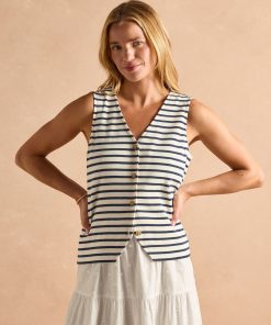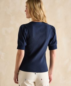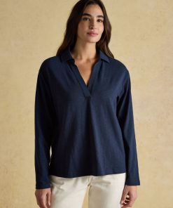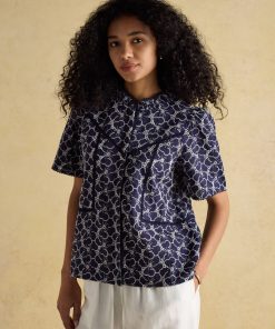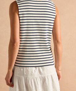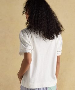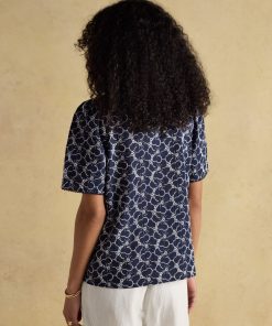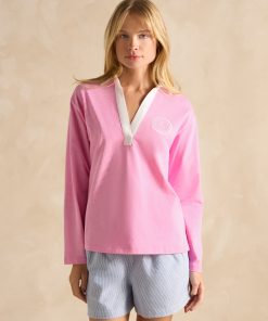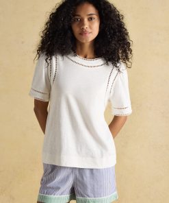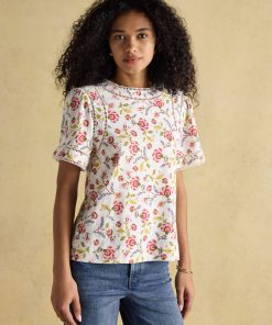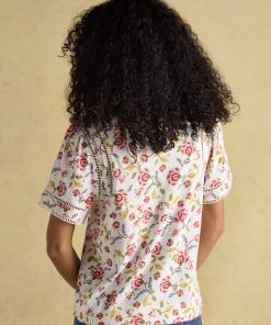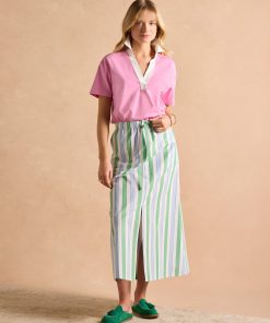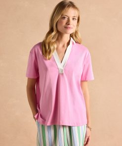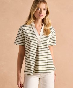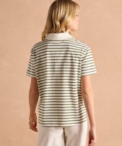 Joules Women’s Tallie Khaki/cream Short Sleeve Combed 100% Cotton Collared Top | Khaki & Cream