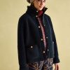 Joules Women’s Cherington Black Showerproof Longline Padded Coat With Faux Fur Hood | Black
