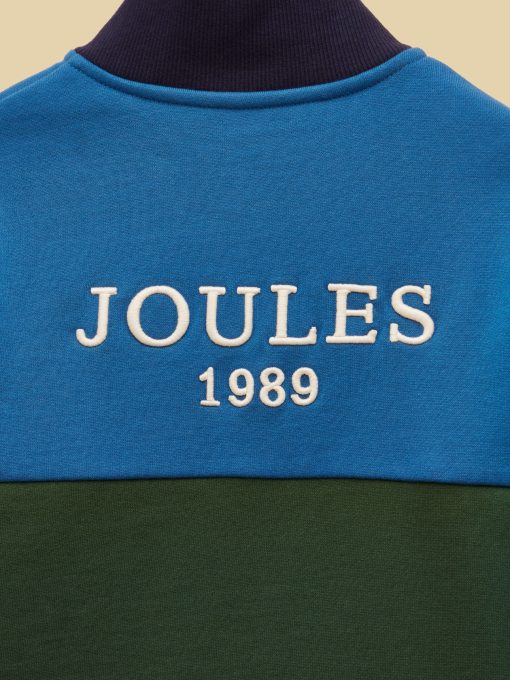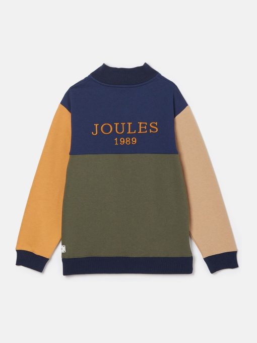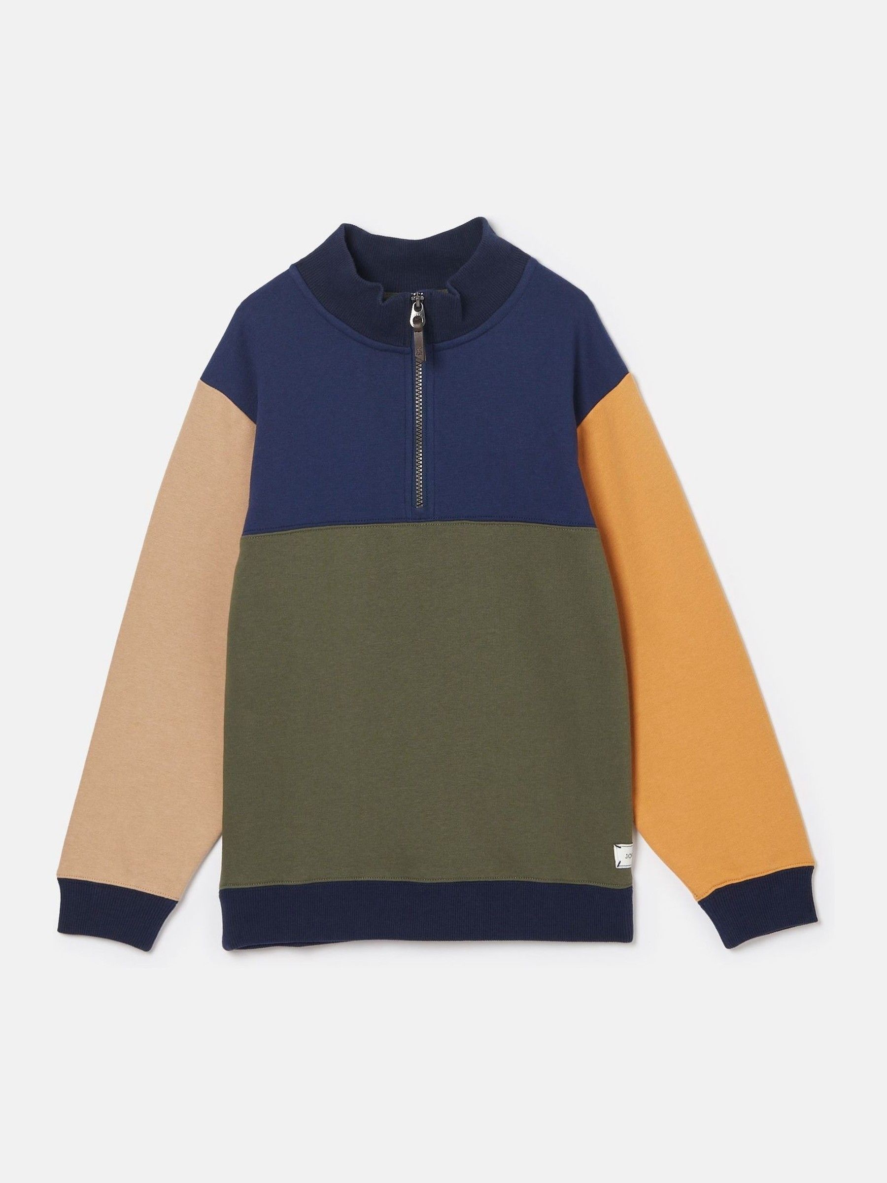 Add a new layer to their wardrobe with the Elliot sweatshirt. Its quarter zip fastening makes it an easy 'throw over' piece and the relaxed fit ensures plenty of room for movement. The fabric has a brushed back finish creating a soft hand-feel, while the colourblock design will make it their favourite style to wear. Turn it around to discover Joules branded embroidery on the back! Finished with ribbed hem, cuffs, and funnel neck. Cotton blend Brushed-back fabric finish Relaxed fit Quarter zip Ribbed funnel neck Ribbed hem and cuffs Joules branded embroidery on the back Colourblock design