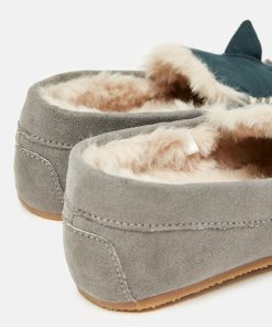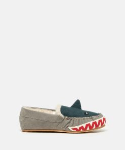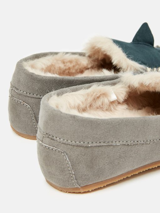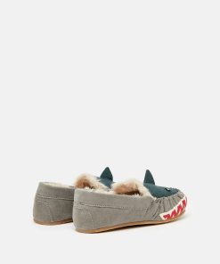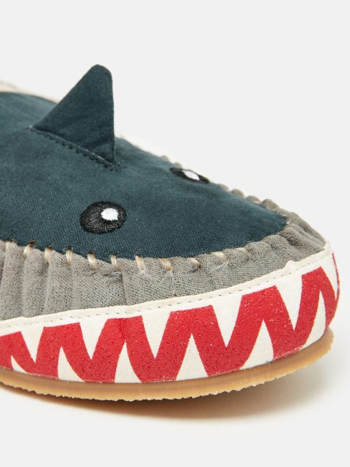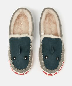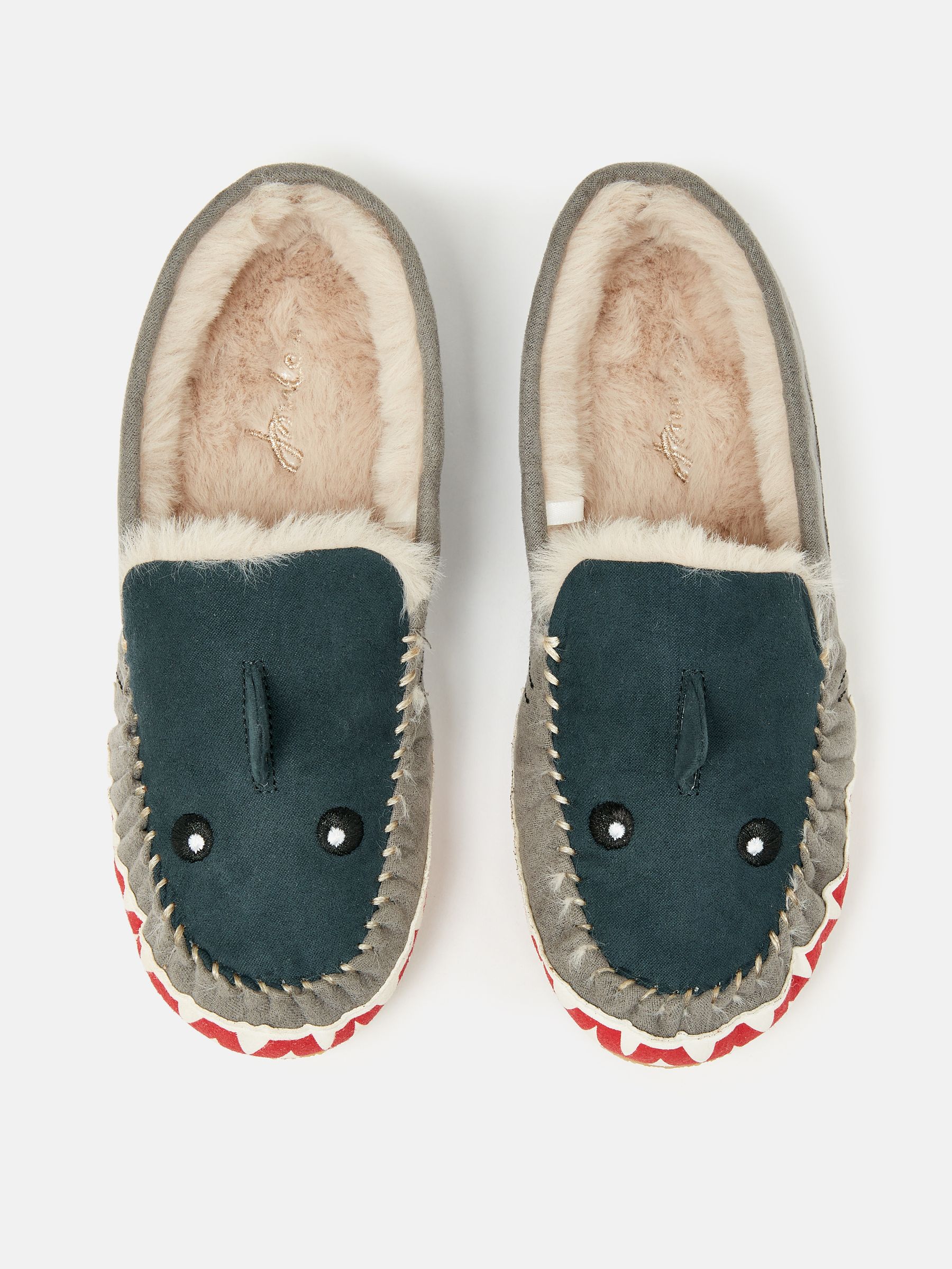 These moccasin slippers will add a snappy touch to your little one's at-home attire. The microsuede uppers feature a shark design complete with a padded 3D fin, an embroidered face and gills. Lining the inside is a super soft faux fur that they can wiggle their toes into. The rubber outsole makes them more durable and provides extra grip.They're finished with metallic Joules branding on the insole. Now sit back and watch their faces fill with joy when they see these!Microsuede Moccasin-style Faux fur lining Padded 3D fin Embroidered eyes, nose and gills Rubber outsole Branded metallic embroidery to the insole
