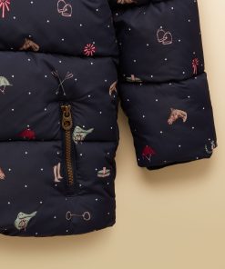 The Emmeline is a protective and cosy piece she'll love to wear. Crafted to a regular fit, this padded style is adorned in a beautiful hand-drawn design that's so dreamy and features many properties that add to its appeal. It's showerproof, has fleece-lined pockets, a patch pocket to the chest, zip and chin guard, a fleece-lined funnel neck, storm flaps, a hood and reflective branding. Just add wellies and be prepared for lots of fun – whatever the weather! Padded Showerproof Fleece lined pockets Fleece lined funnel neck Storm flap Patch pocket to chest Zip and chin guard Hood Reflective branding