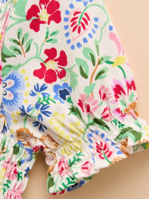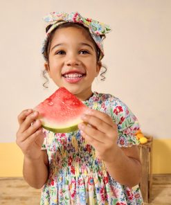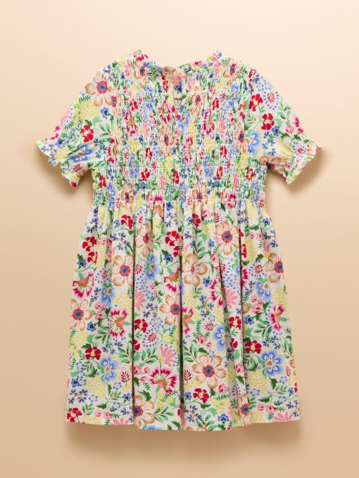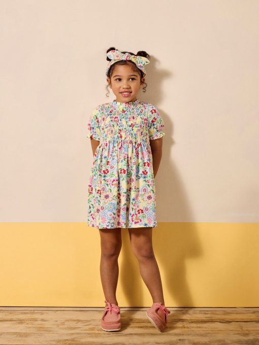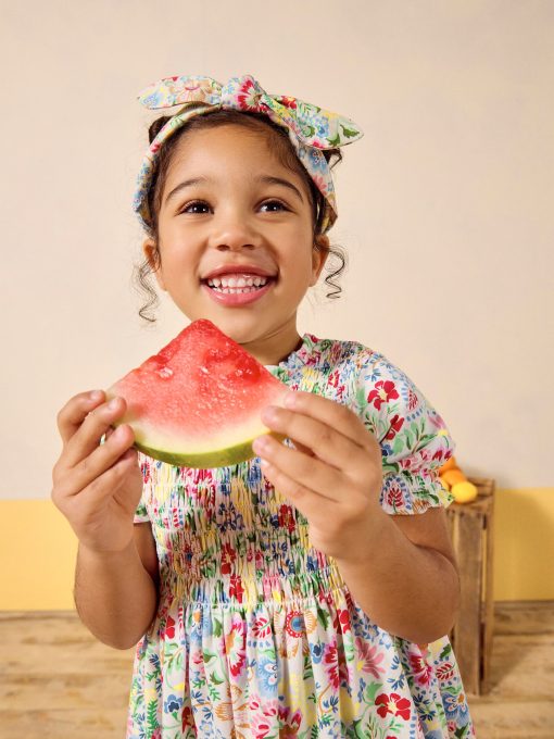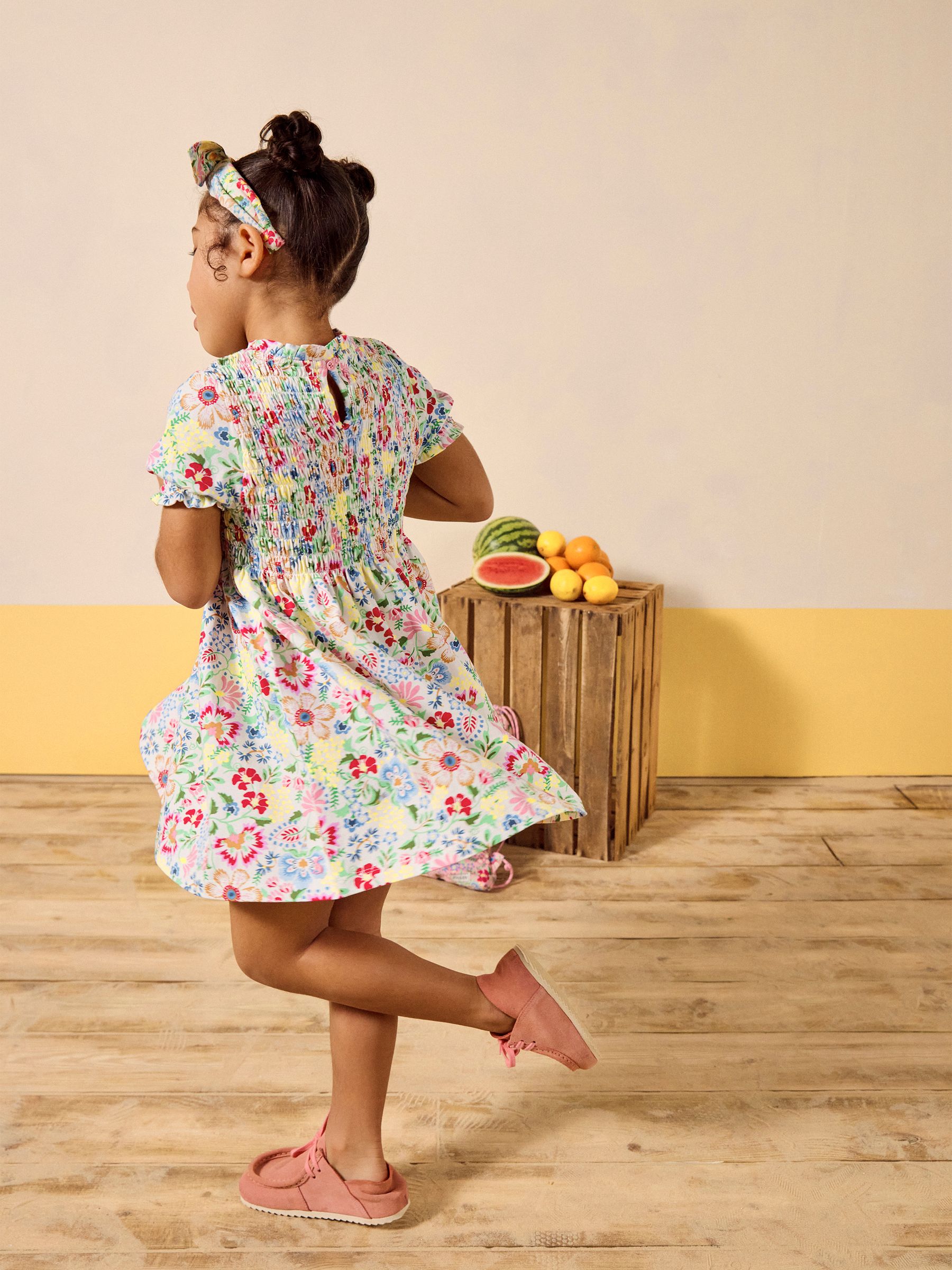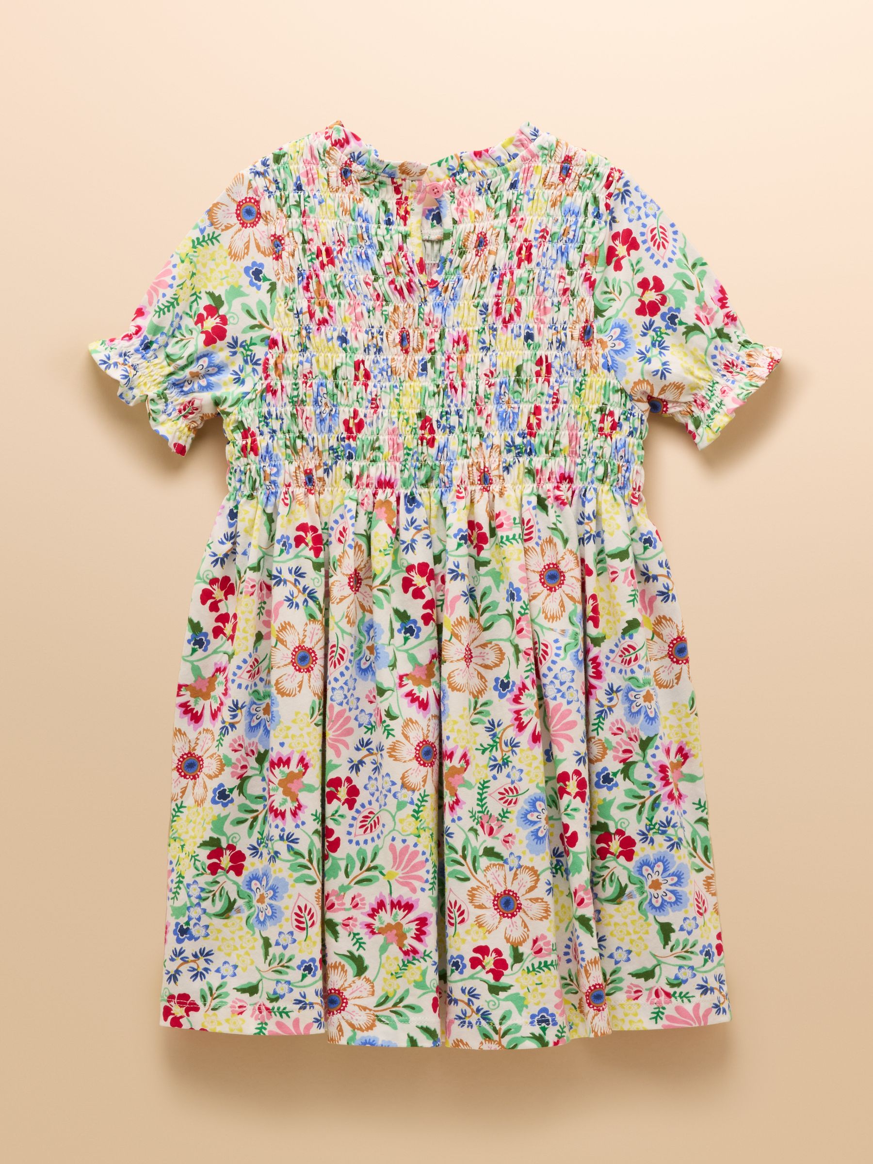 This is a dress so good, your little one will want to wear it anywhere and everywhere. They'll probably even ask to wear it to bed! It's cut from a quality cotton blend which means it can be loved and worn many times then eventually handed down. To create fullness through the skirt and a twirl-worthy shape, it has a gathered waist. It has a shirred bodice, short sleeves with shirred cuffs and a frilled trim, a round frilled neck and a keyhole opening to the back. The print speaks perfectly to the season. 100% cotton Shirred front and back yoke Gathered waist Short sleeves with shirred cuffs and frilled trim Round frilled neck Keyhole opening to the back Floral print