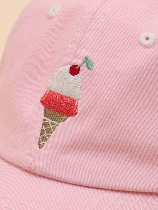 Nothing says summer quite like a baseball cap and the Pink Ice Cream Daley is a laid-back style your little one will wear everywhere. This everyday essential is crafted from cotton, has breathable eyelets and features a fun design. A classic peak with topstitch detailing will keep the sun off her head, while the twill adjuster to the back and metal clasp allows for the perfect fit. Cotton twill external adjuster Metal clasp adjuster Peak with top stitching Breathable eyelets