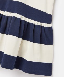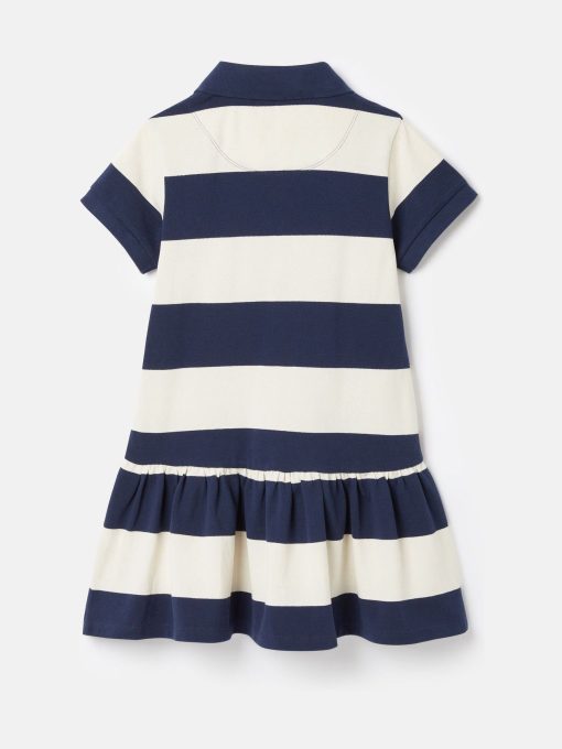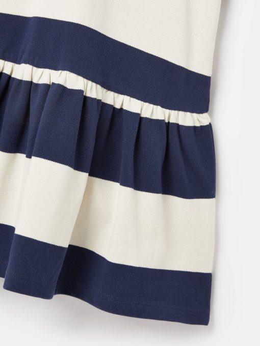 We’ve taken our love of polo shirts to the next level and made a dress version for your little one! Practical yet oh-so-stylish, Orla is the perfect thing to wear all summer long. It’s got the traditional look of a polo with short sleeves, a button placket and a collar just with a few Joulesy twists. We’ve added a dropped waist with a frilled hem that will have them twirling in delight and an all-over horizontal stripe. Polo style collar Button placket Short sleeves Hare embroidery to the chest Easy fit Gathered peplum skirt Joules branded embroidery under the back neck collar