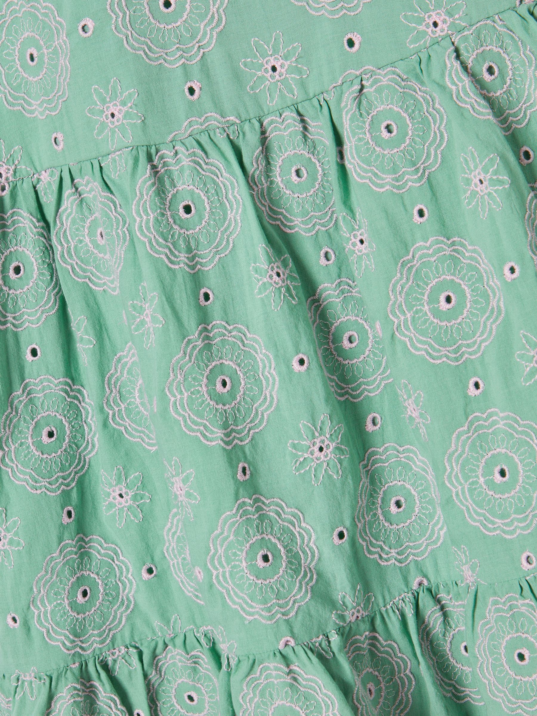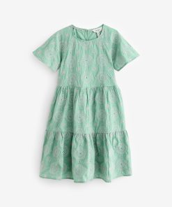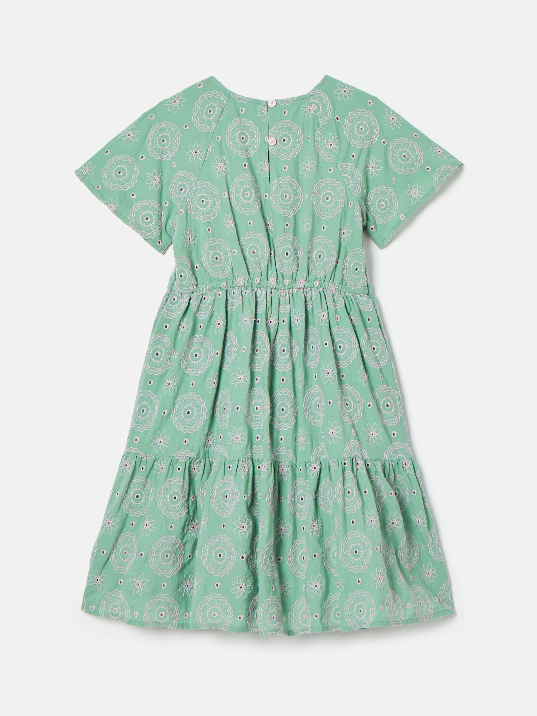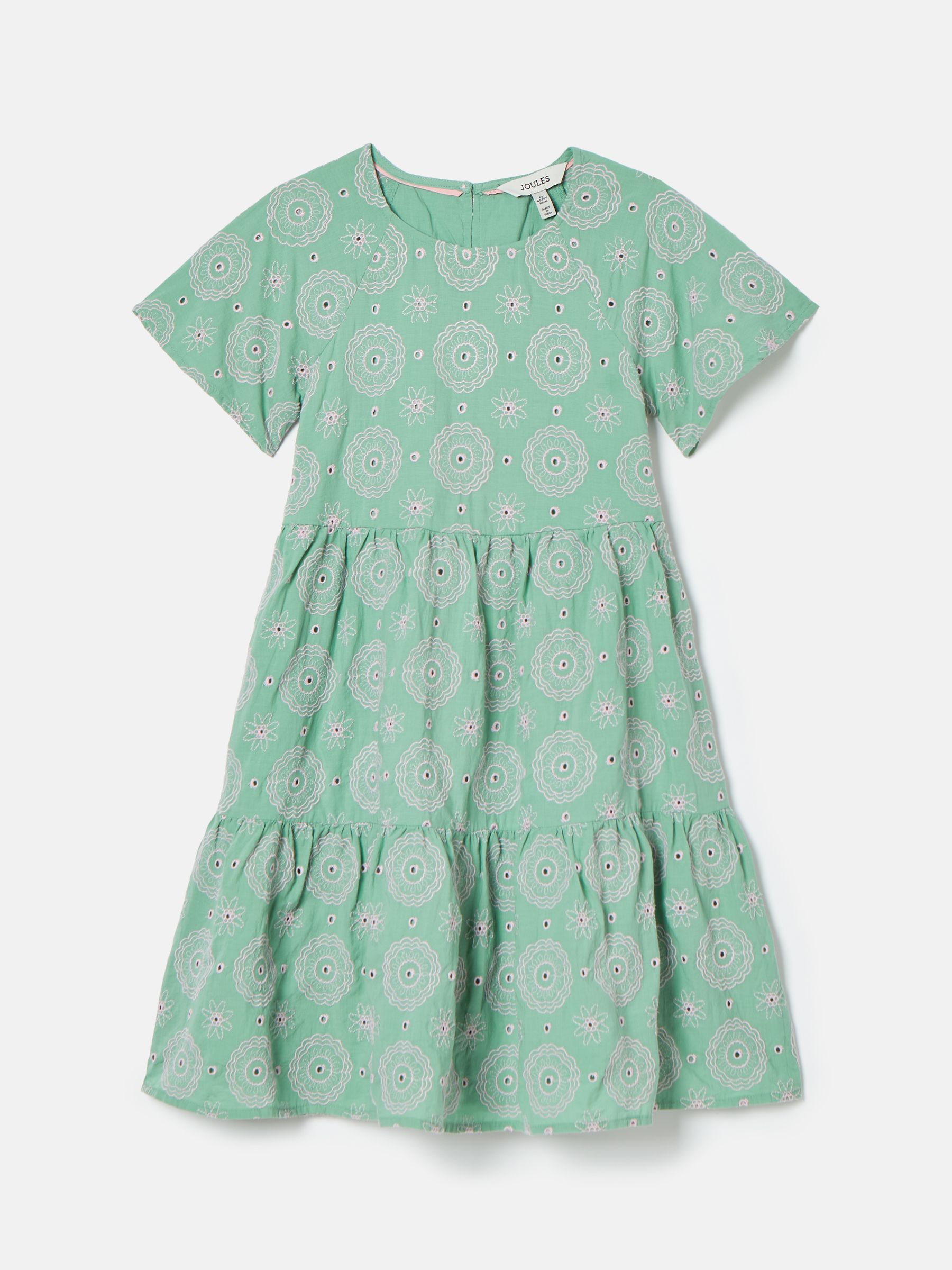 The Sunshine dress is the kind of style your little one dreams about. With a tiered skirt for a dramatic twirl, floaty angel sleeves and a pretty print, there's no doubt it'll be their new favourite. The dress is crafted from a blend of viscose and cotton and is a piece that can be passed down again and again. It fastens at the back with two buttons and is adorned with a print that uses a colourful palette we know they will love. Short, floaty angel sleeves Round Neck Keyhole button fastening to the back Tiered skirt with gathers