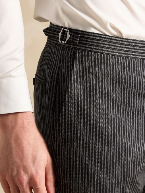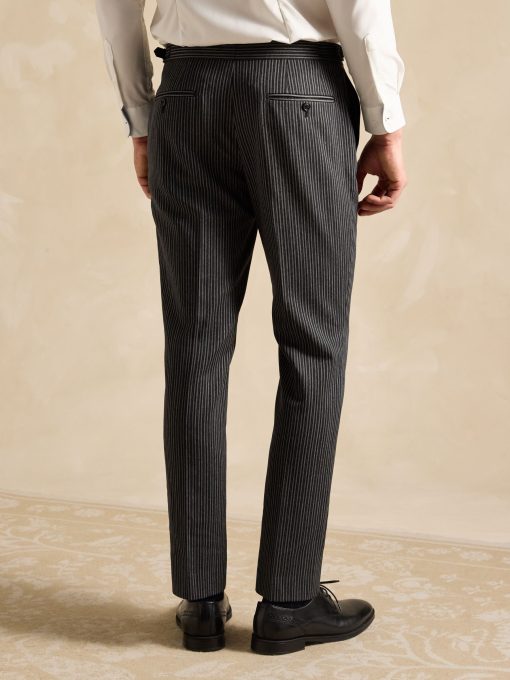 In a traditional charcoal pinstripe with side adjuster detail, these trousers will complete a look perfect for the most formal and special of occasions. Ensuring you look and feel your best, these trousers come in a regular fit and feature a hook and bar fastening along with slip-in side pockets and welt back pockets. Complete the look with a matching jacket and contrast waistcoat available separately.