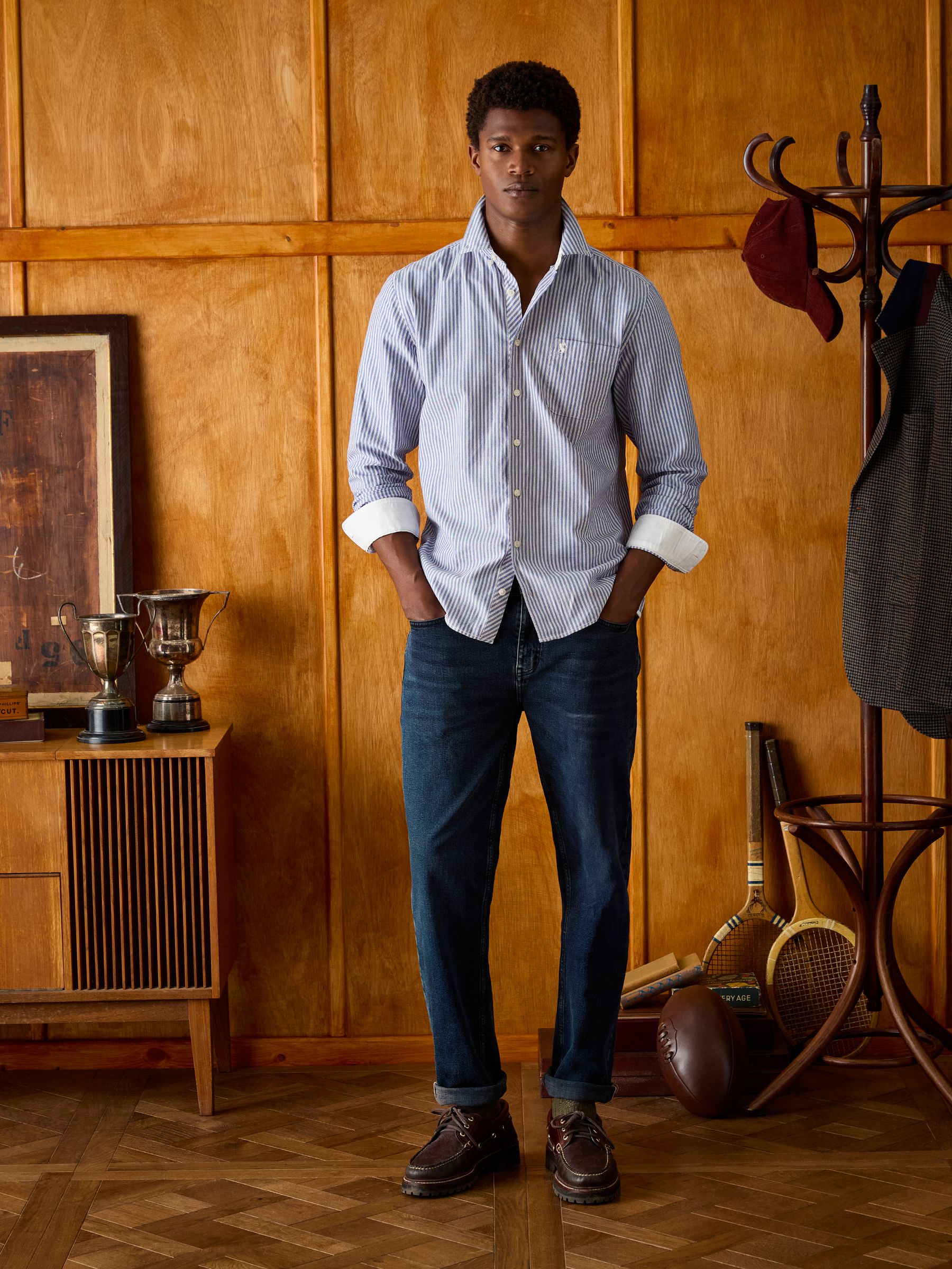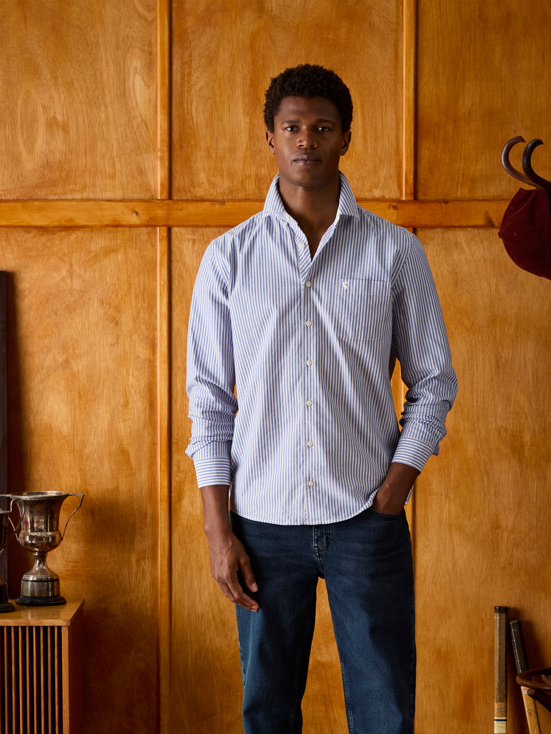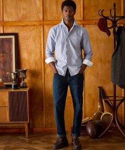 This shirt is a classic that every man should have in his wardrobe. Built from soft yet sturdy cotton and with enough shape and structure to help you feel as dapper as it looks. Layer it under rugby shirts for a smart casual look or button it up with a pair of chinos for those more formal affairs. The hidden embroideries add detail where it's least expected and are a constant reminder of the quality. Cotton Classic fit Full button fastening Button-down collar Chest pocket Button cuffs with contrast stitching Back hanging loop detail Embroidered detailing