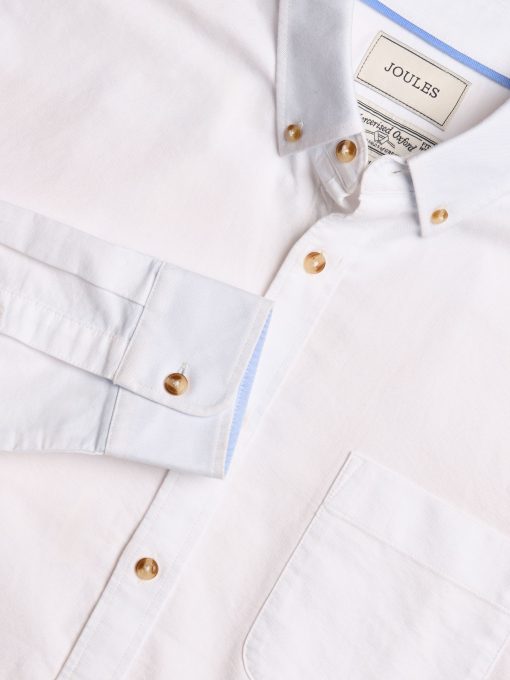 This white shirt is a classic that every man should have in his wardrobe. Built from soft yet sturdy cotton and with enough shape and structure to help you feel as dapper as it looks. Button it up or wear it open with a T-Shirt. The choice is yours. The chambray trims add detail where it's least expected and are a constant reminder of the quality.Cotton Classic fit Full button fastening Button-down collar Chest pocket Chambray trims Button cuffs with contrast stitching Back hanging loop detail Joules hare embroidery to pocket Long sleeves