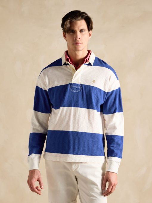 This is our summer take on our iconic rugby shirts. Crafted from laundered cotton, it's both soft and lightweight, making it a great piece to sport throughout the warmer days of the year.It still has all of the details you know and love, including an authentic twill collar finished with undercollar stitching, Joules rugby club embroidery to the chest and with signature stripes. When it comes to rugby shirts, give ours a try. You won't look back. This rugby was designed to be a little oversized. If you want a classic fit, we recommend sizing down.Laundered cotton Lightweight Twill collar with understitching detail Button fastening Joules rugby club embroidery