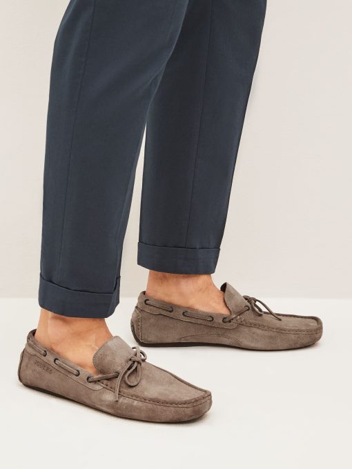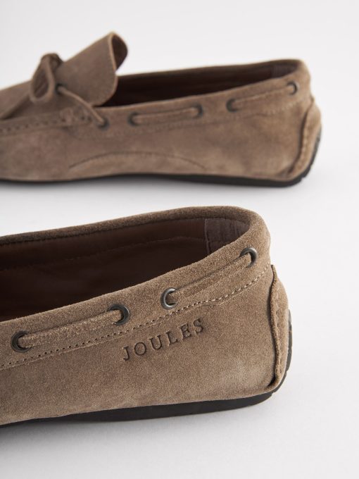 Whether worn with or without socks, the classic Driver shoe remains king of the moccasins, with a versatile slip-on design that looks fantastic with chinos, linen trousers, denim jeans and shorts. Upgrade your casual look with a hint of heritage. A soft premium suede upper gives the Driver shoes a timeless feel, boasting a square moccasin toe, a lace-up fastening and lace detailing to the side, decorated with an embossed Joules logo to the side of the heel. The leather and textile lining ensures comfortable wear, with an Ortholite footbed for cushioning with every step. A slimline outsole has a grippy tread, for lightweight traction.
