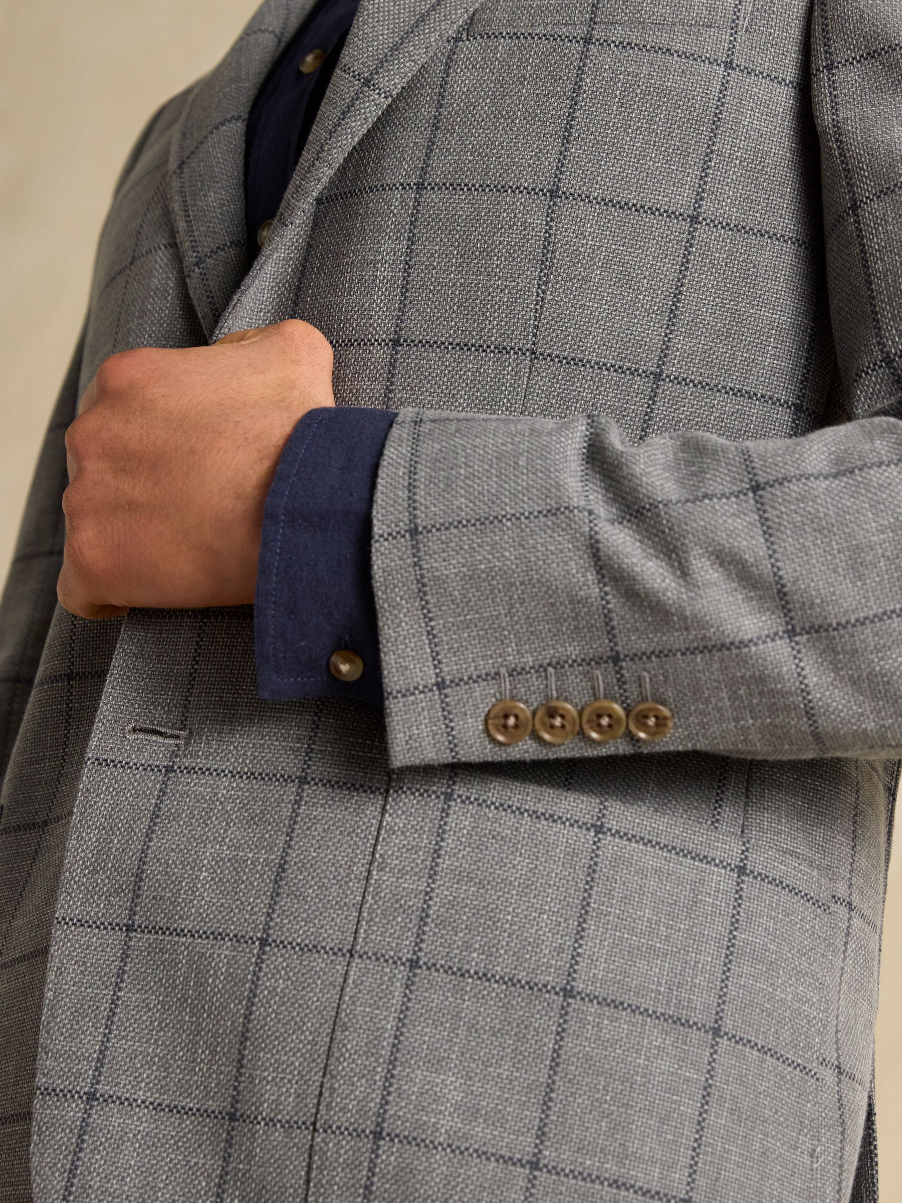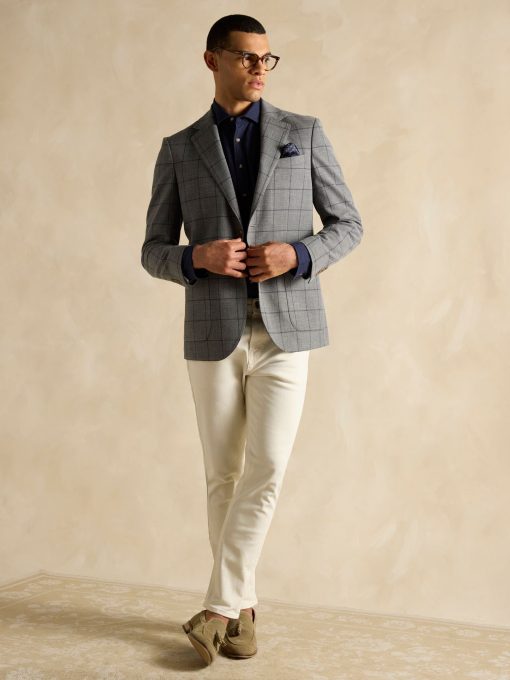 If you're looking for a blazer that ticks the box for any occasion, this one is a great choice. Cut from Italian cotton blend fabric and with a slim fit it's a versatile piece every gent's wardrobe needs. The lapel collar, single breasted design and wide check pattern gives it a classic look that will never go out of style. The outer features slip in patch pockets, a single pocket to the chest and kissing buttons at the cuffs. Inside a printed half lining and additional internal pockets add a practical finish. Pair with chino's and a shirt for smart occasions, or achieve a cool casual look by layering in a quality t-shirt or jeans.Lapel collar Half lining Single breasted design Patch pockets to the front Single pocket to the chest Kissing buttons to the cuffs Since the 1960s, Nova Fides has been based in the Prato textile district creating fine weaves and fabrics for Men's clothing.