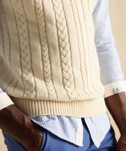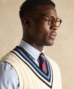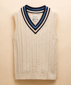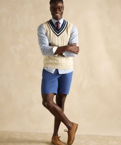 This vest is a game changer. It's made from 100% cotton that's soft to the touch and features a distinctive cable knit pattern to the front and back. A ribbed v-neck with a striped trim draws on cricket influences and will add a sporty touch to any gent's wardrobe. For a preppy look, layer it over a striped shirt and with a pair of chinos in a brighter and braver colour. 100% cotton. Cable knit pattern to the front and back. Ribbed v-neck. Sporty stripe detailing. Ribbed hem.