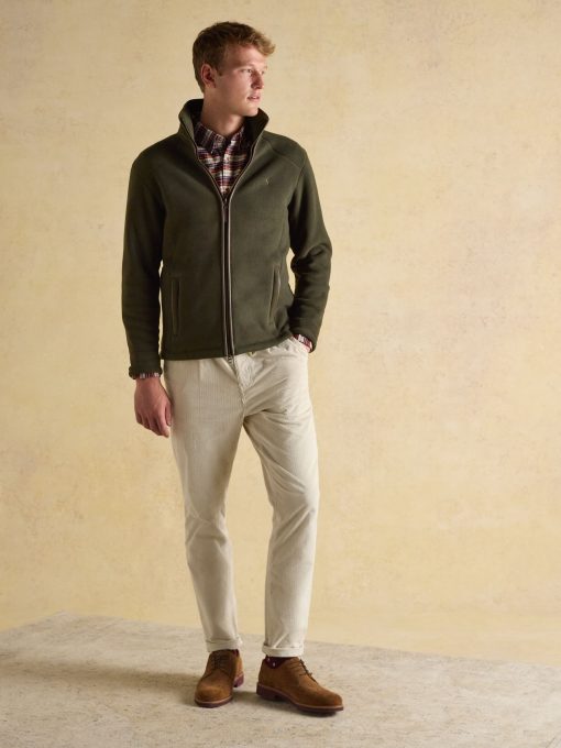 Step out in style with our new impeccably tailored zip-up fleece from our exclusive Heritage collection. Crafted from soft polar, it’s super hardwearing and will match with pretty much anything in your wardrobe. It’s built with a warming standing collar, faux leather trims, side-slip pockets, metal hanging chain and is finished with our iconic branded hardware. Perfect for a day out in the countryside, or even walking the dog. You won’t want to miss out on this piece. Polar fleece and bonded fleece lining Full length, two-way zip fastening Branded metal hardware in brass finish and branded faux leather zip pull PU binding along the neck, zip, pocket and cuff edge Brass finish metal chain at the back neck for hanging Embroidered Joules on the back collar Stand collar Welt pockets with popper fastening Collection available for women, men and children