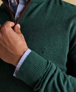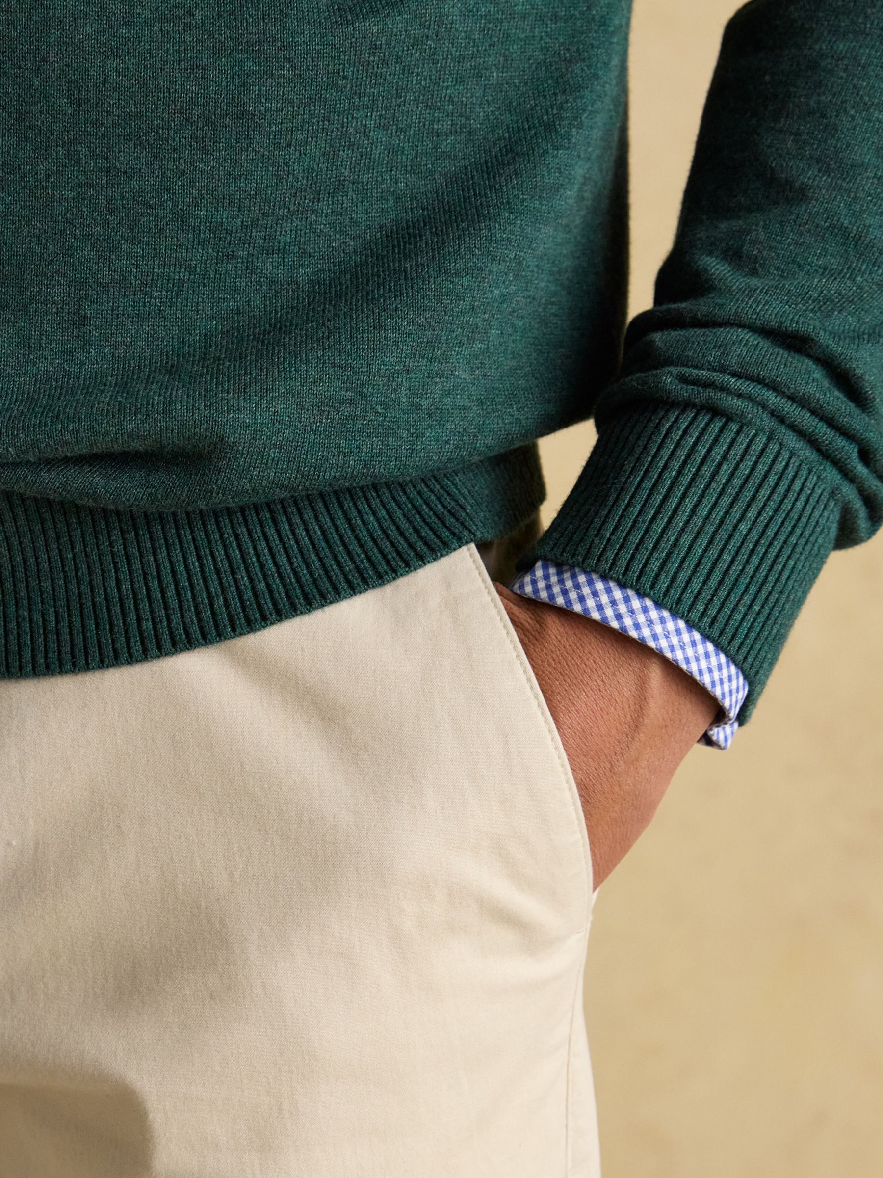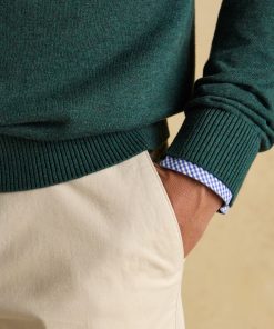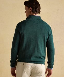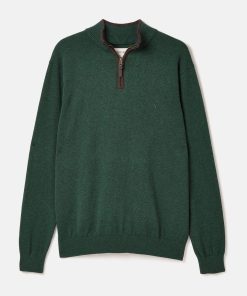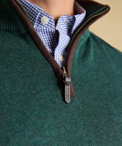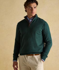 One of our best-loved men's styles, this quarter zip jumper in dark green is crafted from soft yet substantial cotton and is comfy enough for layering and yet dapper enough to wear on its own.The contrast back-neck is ribbed, as are the hem and the cuffs. We recommend pulling it on over a shirt for ultimate style, warmth and comfort. Perfect for those smart-casual occasions that can be tricky to dress for.Cotton Classic fit Funnel neck with quarter zip fastening Faux leather zip pull Ribbed hem, neck and cuffs Contrast back neck tape