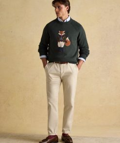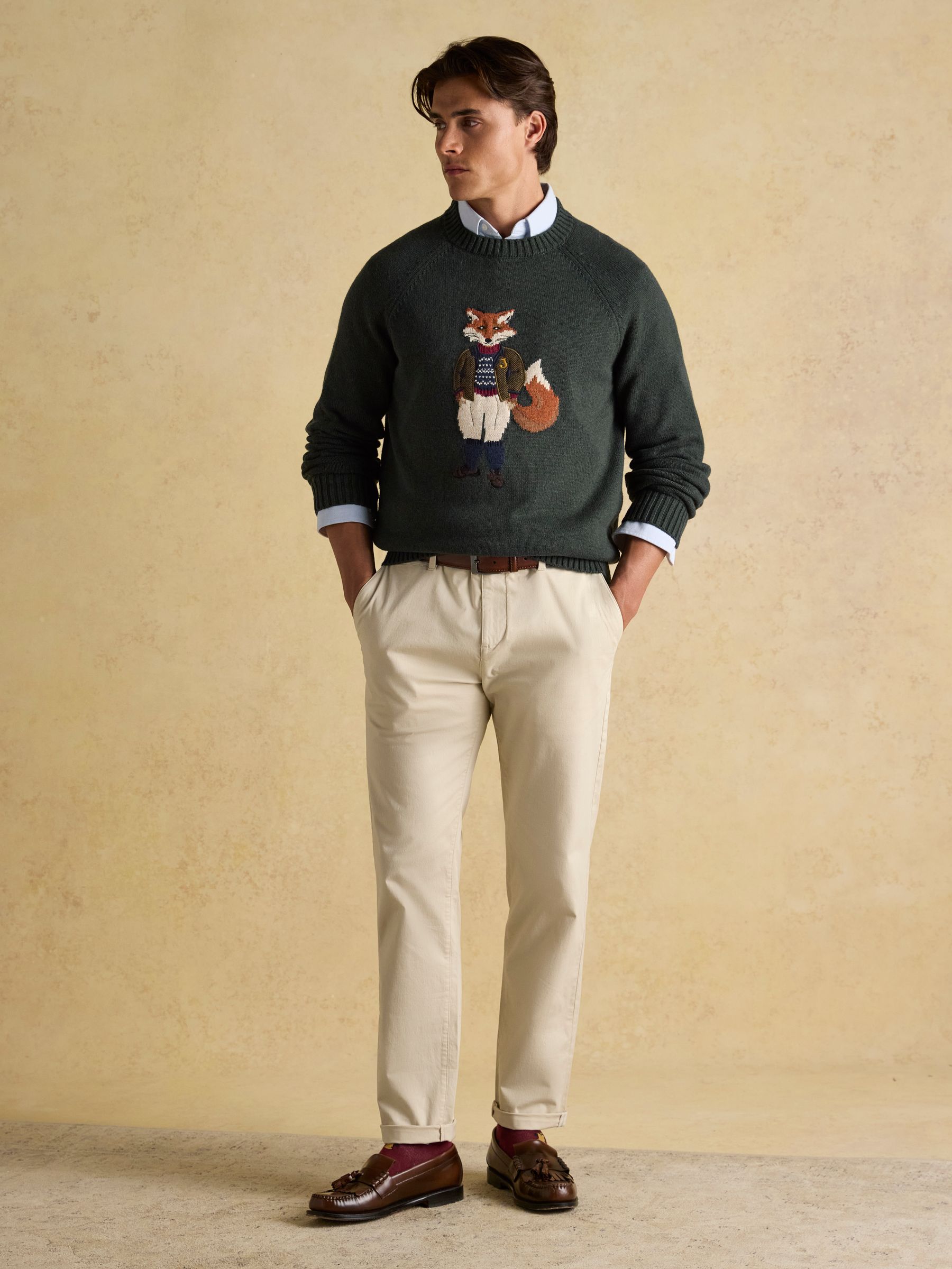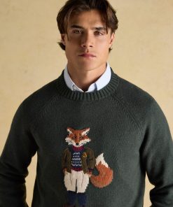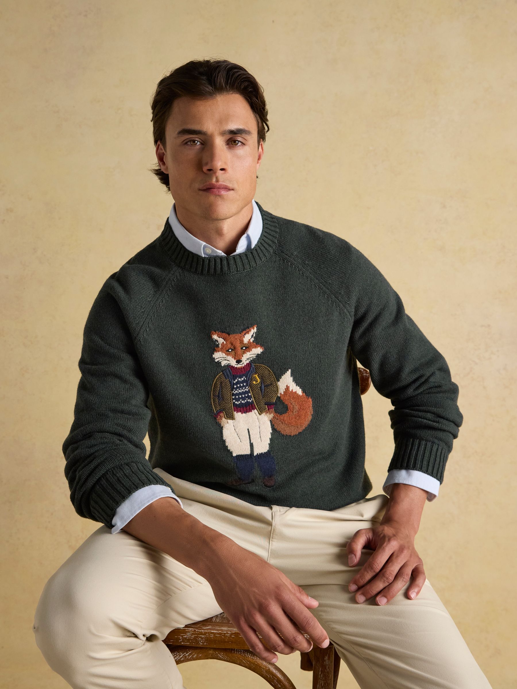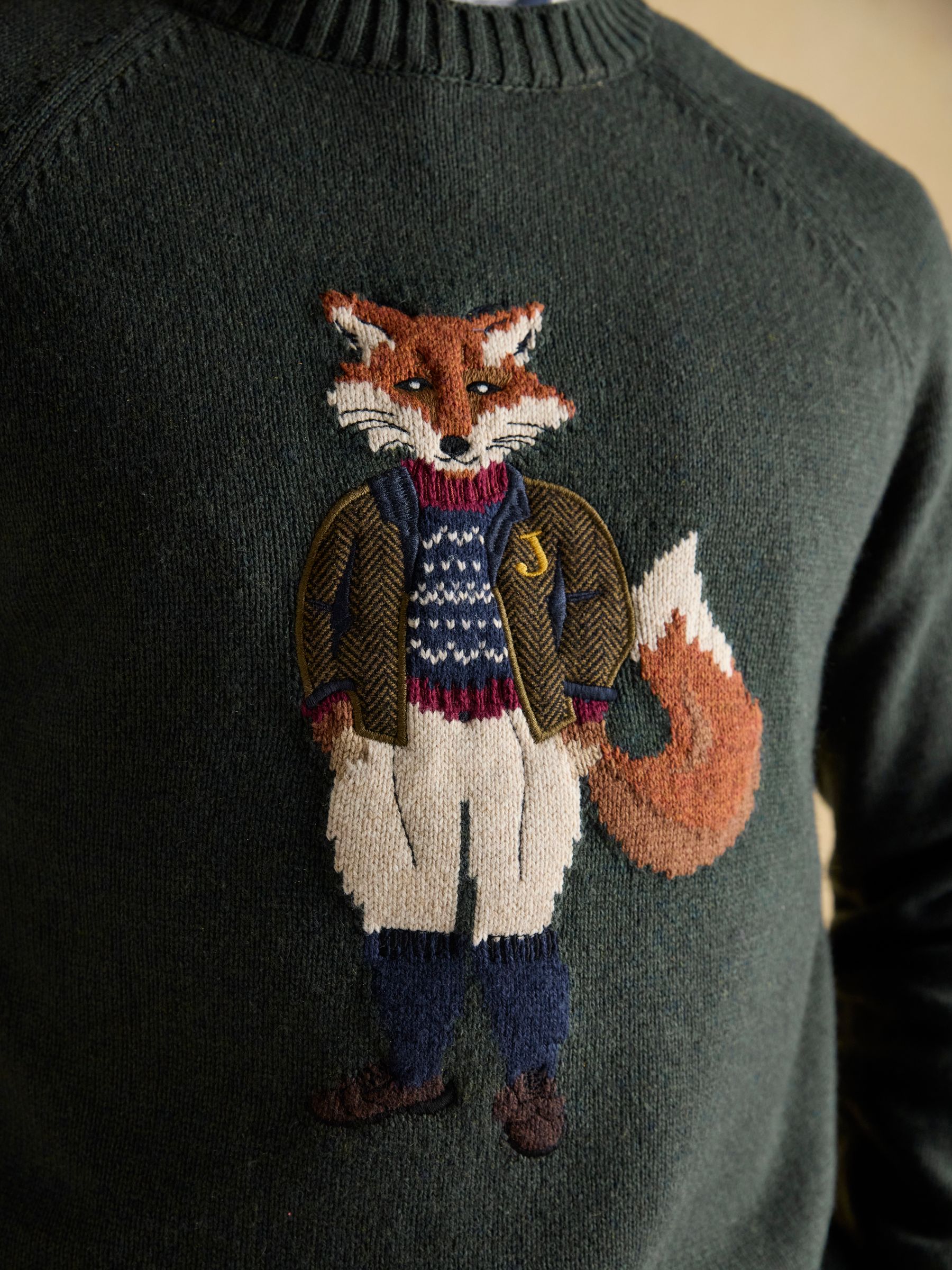 Jonty Fox is set to bring character to your autumn and winter wardrobe. Bright-eyed and bushy-tailed, this jumper will make quite the statement in your wardrobe.The rather distinguished Jonty is the focal point of the piece and represents the eccentricity of British country style.The well-dressed fox is knitted into the jumper while a cutting from a bespoke piece of Joules tweed has been stitched on top to create a beautifully textured finish.The jumper itself has been crafted with care from a quality cotton blend, it has a classic fit through the body and raglan sleeves for supreme comfort. The round neck and ribbed hem and cuffs offer the opportunity to layer almost anything underneath, while its heritage colour palette is perfect for the season.Cotton blend Classic fit Intarsia fox to the front Bespoke Joule's tweed cut and laid onto the piece Long raglan sleeves Round neck Ribbed hem, neck, and cuffs