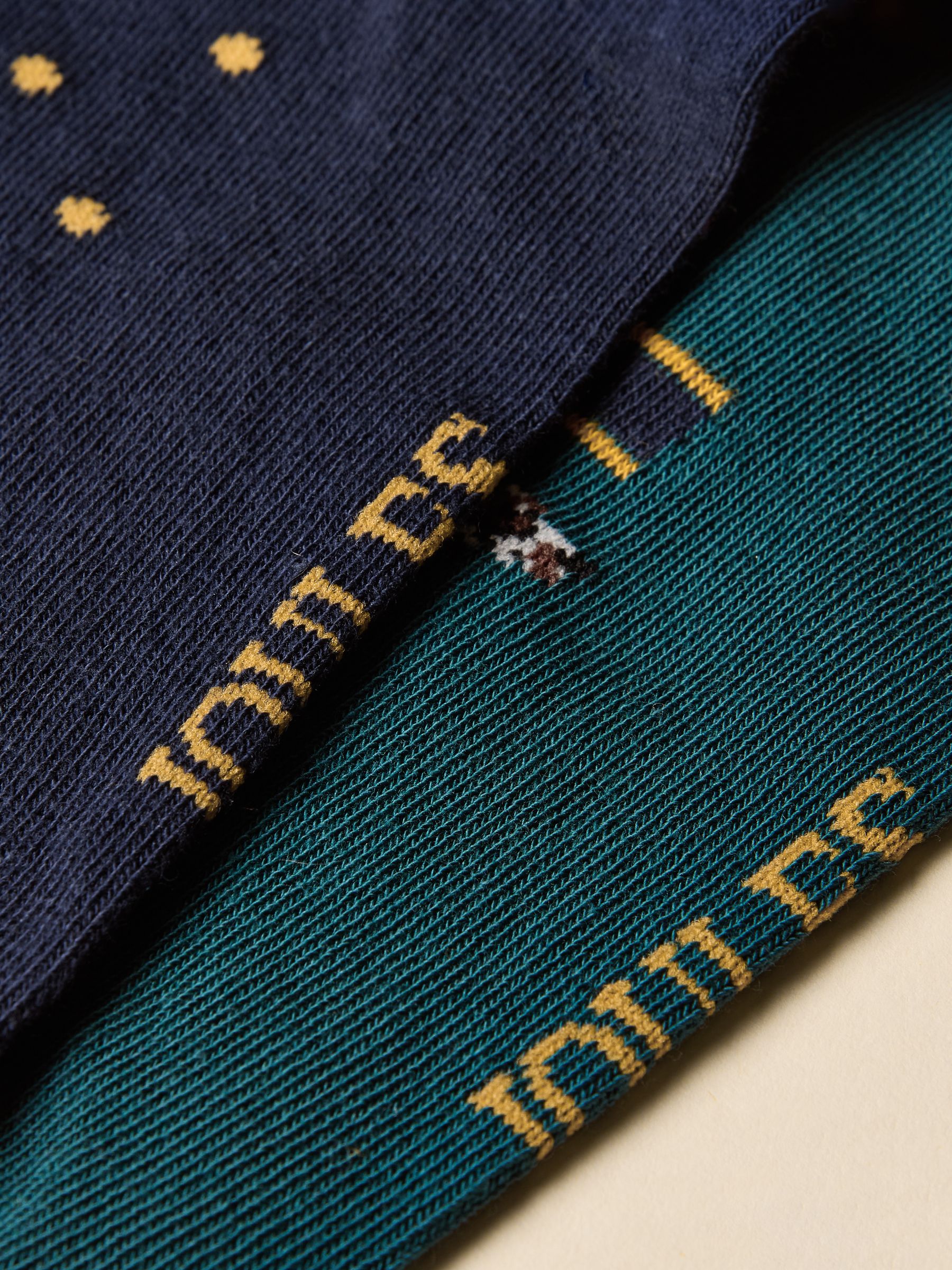 There's no such thing as too many socks. Especially when they look this good. These men's socks come in a pack of two and will give his top drawer a much-needed boost. The feature Biome Active Freshness technology that keeps feet fresher for longer. The ribbed cuffs increase the comfort and stops them from falling down. Choose from a line-up of different designs. – Pack of two – Ribbed cuffs – Two different designs in a pack – Joules branding on the bottom