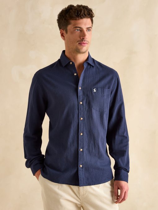 Made from a light linen blend fabric and with a short-sleeved design, this shirt is a staple for the warmer months. Whether it's an afternoon-into-evening BBQing in the garden or exploring the cobbled streets on holiday, it's a true go-to for the season. It has a classic fit (just choose your usual size), a button-down fastening so it can be worn open over T-Shirts, and has a pocket to the chest. Eyelets at the back ensure it's breathable and keeps you cool. Style with chino shorts and loafers for a look that speaks to the spring and summer months.Linen blend fabric Lightweight Classic fit Button-down fastening Single chest pocket Breathable eyelets and box pleat detailing to the back