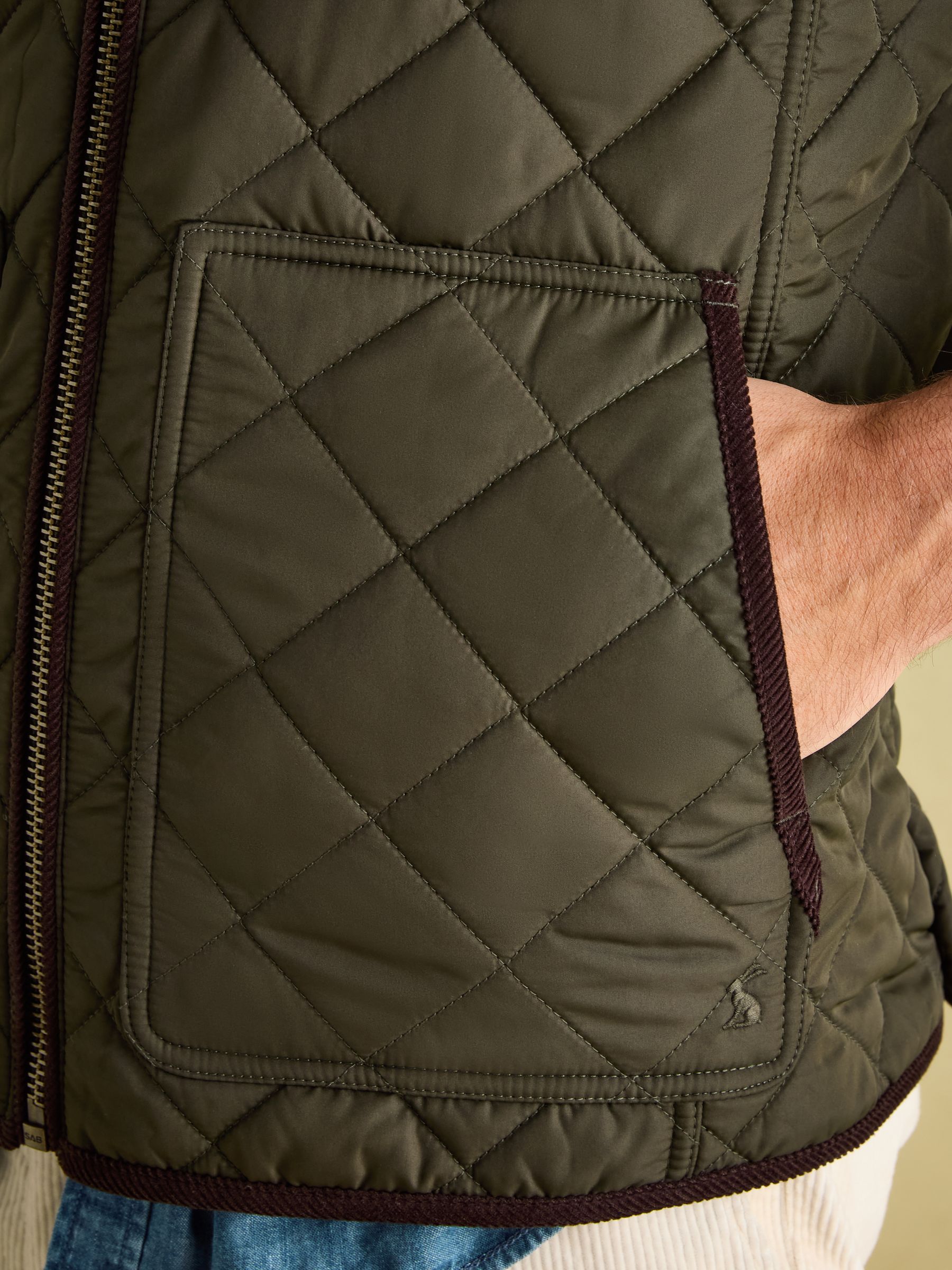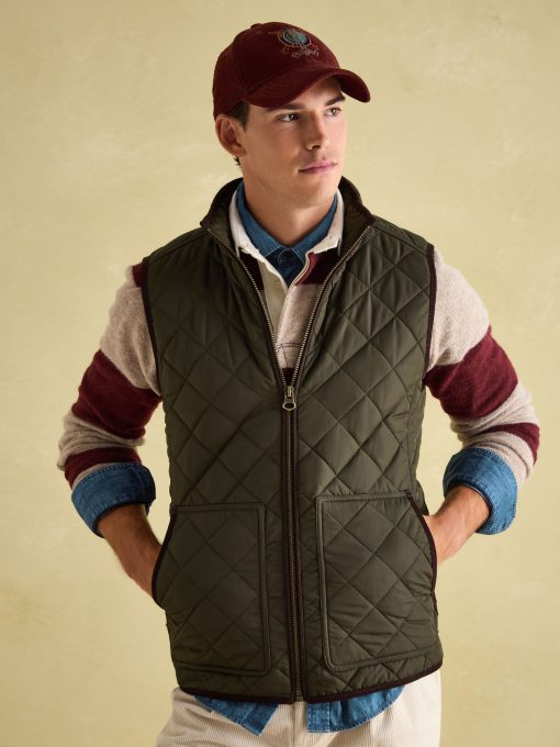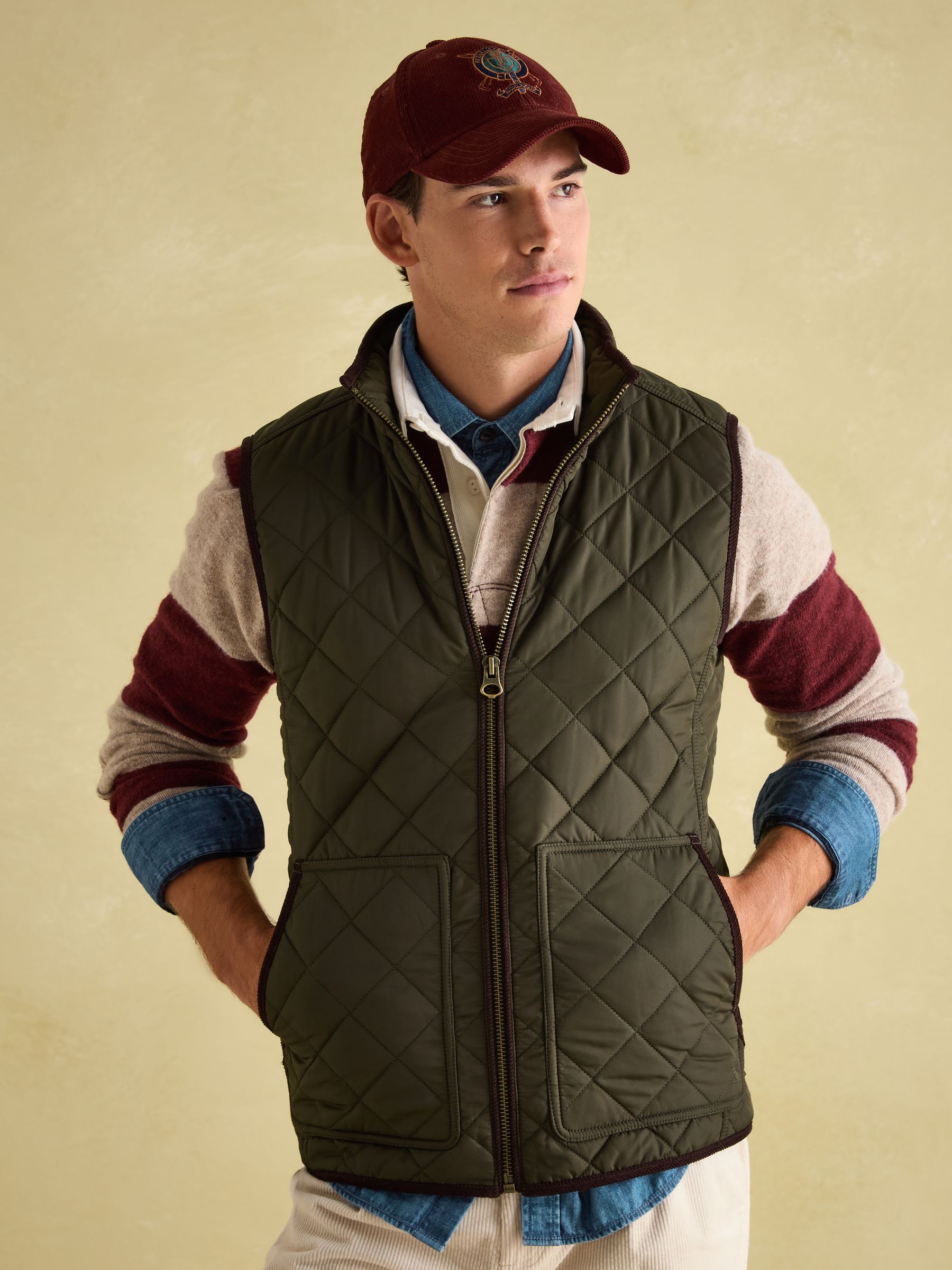 Ever versatile, the gilet is a rugged piece of outerwear everyone needs. The Maynard features diamond quilting inside and out, with a fleece lining for fending off the British weather while you roam the countryside. Classic cord binding can be found on the hem, pockets, armholes and neck. It features a hardy metal zip fastening, back vents with metal poppers and comes in two heritage colours.Diamond quilting (inside and out) Classic fit Fleece lining Front pockets Cord binding to the hem, pockets, armholes and collar Metal zip fastening Back vents with popper fastenings