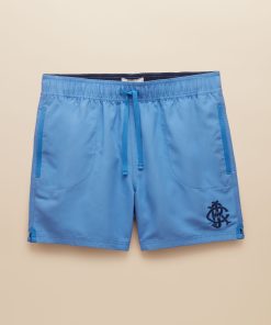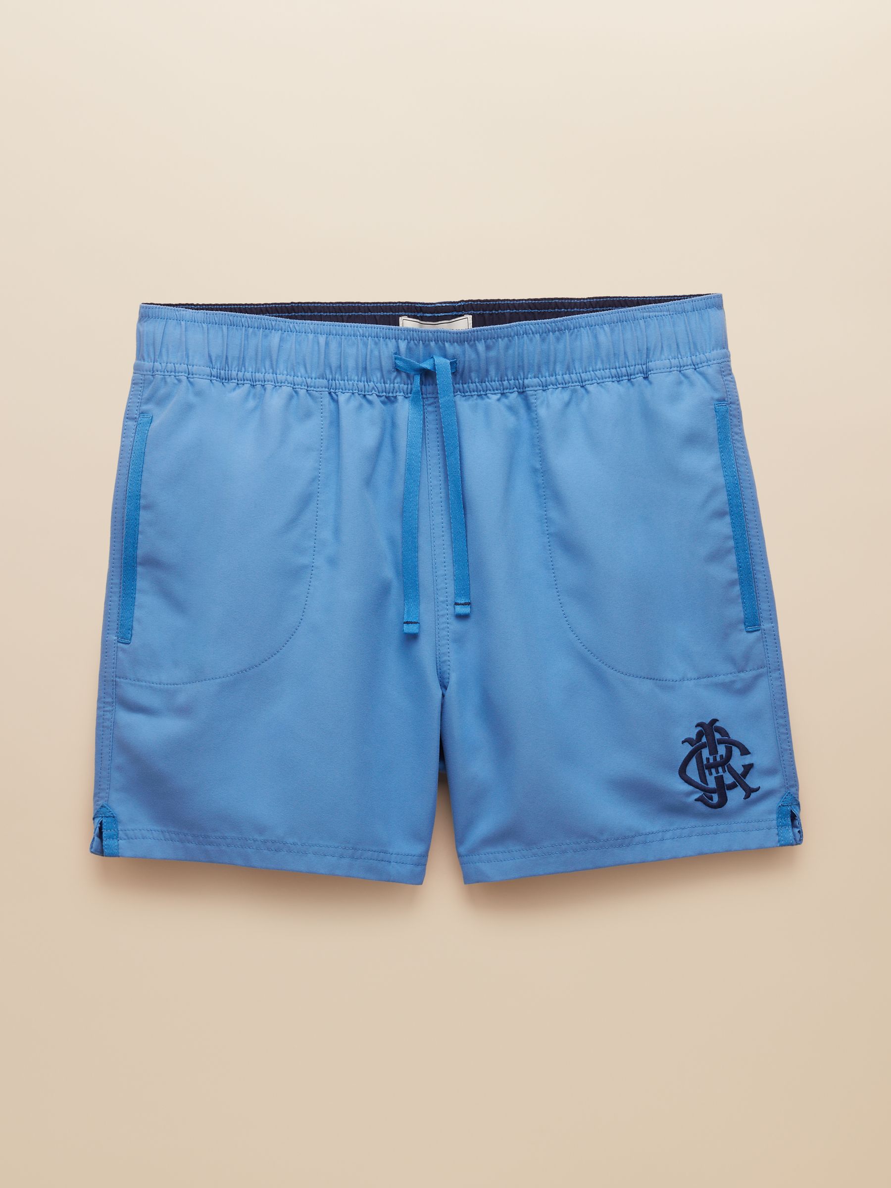 Take your swimming attire up a notch with our new rugby-inspired swim shorts. In the shape of traditional rugby shorts and complete with herringbone trims to the pockets and side vents, as well as Joules Rugby Club embroidery to the front, you'll want to wear these in more places than just at the pool and beach. Crafted from a quick drying fabric, (polyester is hydrophobic, meaning the water will not cling to it at all) with waist adjusters, two slip in side pockets, a zip back pocket and a mesh lining. When the games begin, you'll already be a winner. Swim shorts. Quick-drying fabric. Two slip in side pockets. Zip back pocket. Mesh lining. Rugby detail.
