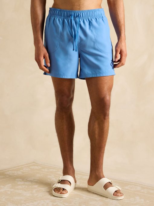 Take your swimming attire up a notch with our new rugby-inspired swim shorts. In the shape of traditional rugby shorts and complete with herringbone trims to the pockets and side vents, as well as Joules Rugby Club embroidery to the front, you'll want to wear these in more places than just at the pool and beach. Crafted from a quick drying fabric, (polyester is hydrophobic, meaning the water will not cling to it at all) with waist adjusters, two slip in side pockets, a zip back pocket and a mesh lining. When the games begin, you'll already be a winner. Swim shorts. Quick-drying fabric. Two slip in side pockets. Zip back pocket. Mesh lining. Rugby detail.