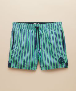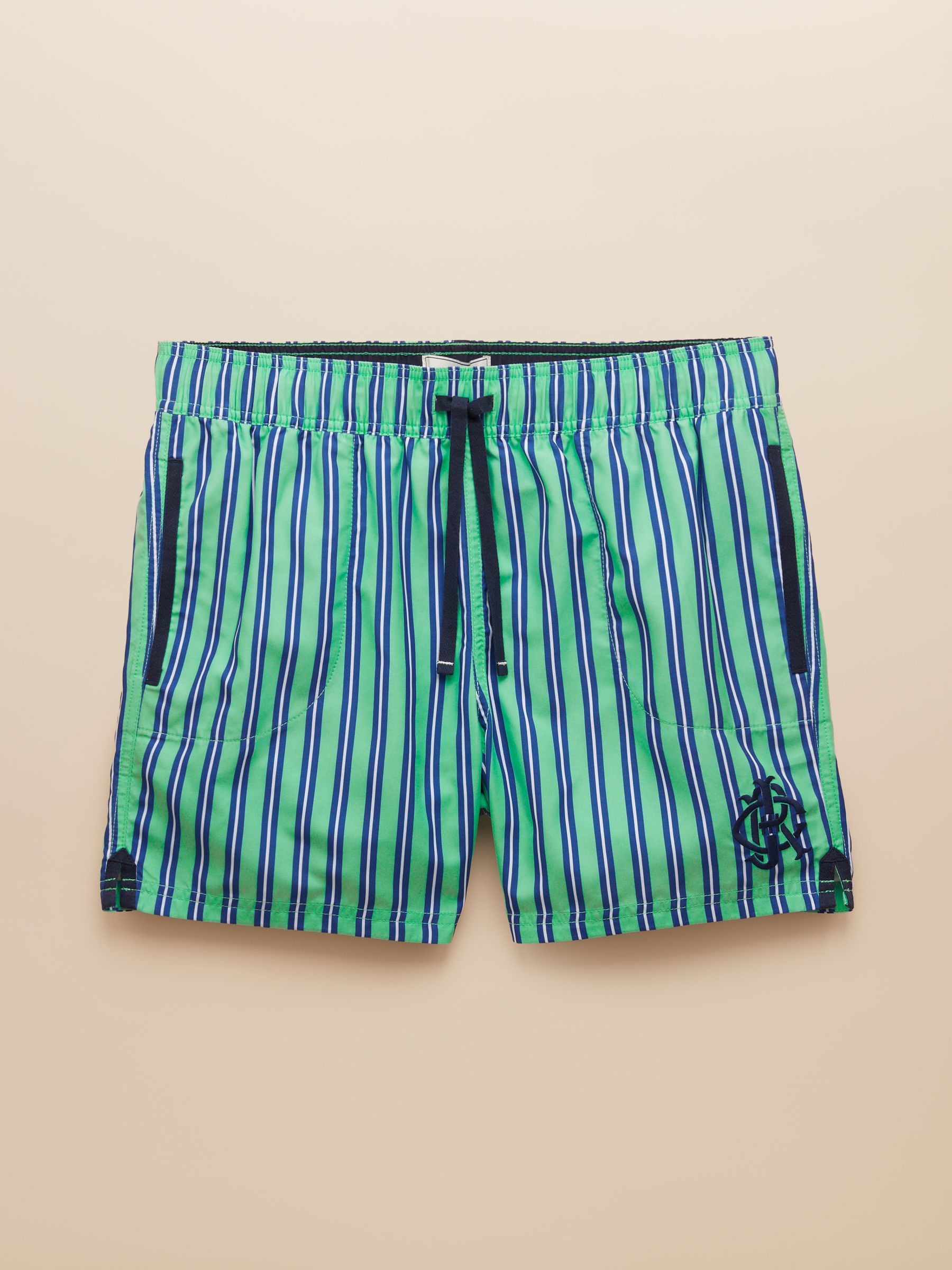Take your swimming attire up a notch with our new rugby-inspired swim shorts. In the shape of traditional rugby shorts and complete with herringbone trims to the pockets and side vents, as well as Joules Rugby Club embroidery to the front, you'll want to wear these in more places than just at the pool and beach. Crafted from a quick drying fabric, (polyester is hydrophobic, meaning the water will not cling to it at all) with waist adjusters, two slip in side pockets, a zip back pocket and a mesh lining. When the games begin, you'll already be a winner. Swim shorts. Quick-drying fabric. Two slip in side pockets. Zip back pocket. Mesh lining. Rugby detail.