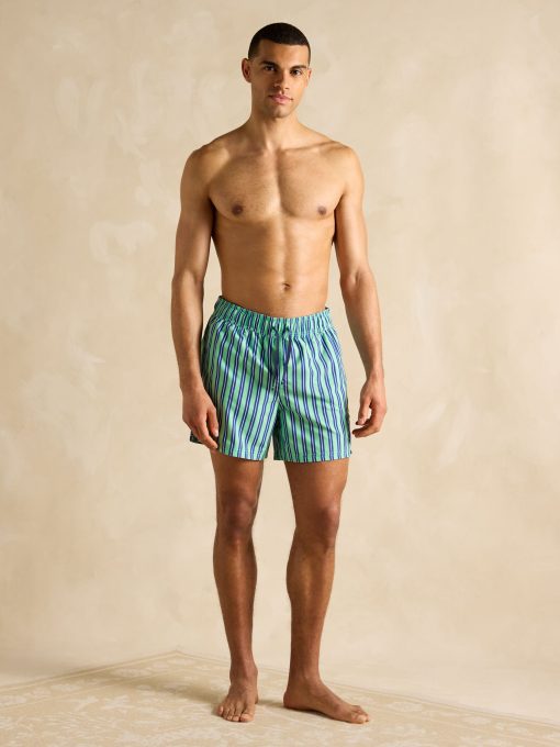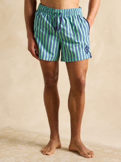 Take your swimming attire up a notch with our new rugby-inspired swim shorts. In the shape of traditional rugby shorts and complete with herringbone trims to the pockets and side vents, as well as Joules Rugby Club embroidery to the front, you'll want to wear these in more places than just at the pool and beach. Crafted from a quick drying fabric, (polyester is hydrophobic, meaning the water will not cling to it at all) with waist adjusters, two slip in side pockets, a zip back pocket and a mesh lining. When the games begin, you'll already be a winner. Swim shorts. Quick-drying fabric. Two slip in side pockets. Zip back pocket. Mesh lining. Rugby detail.
