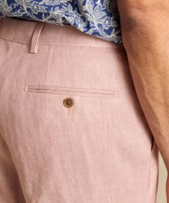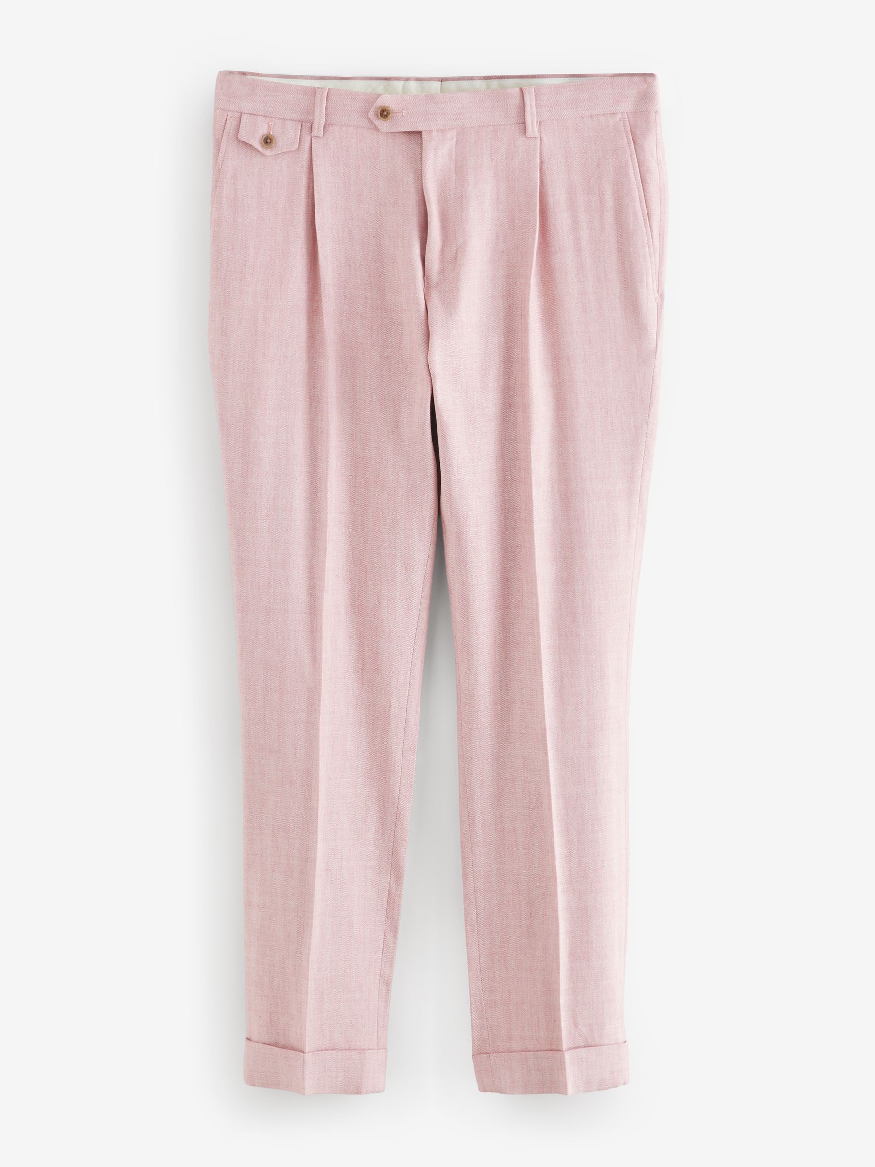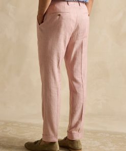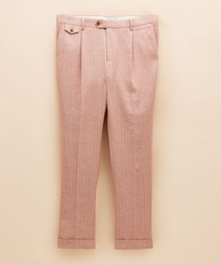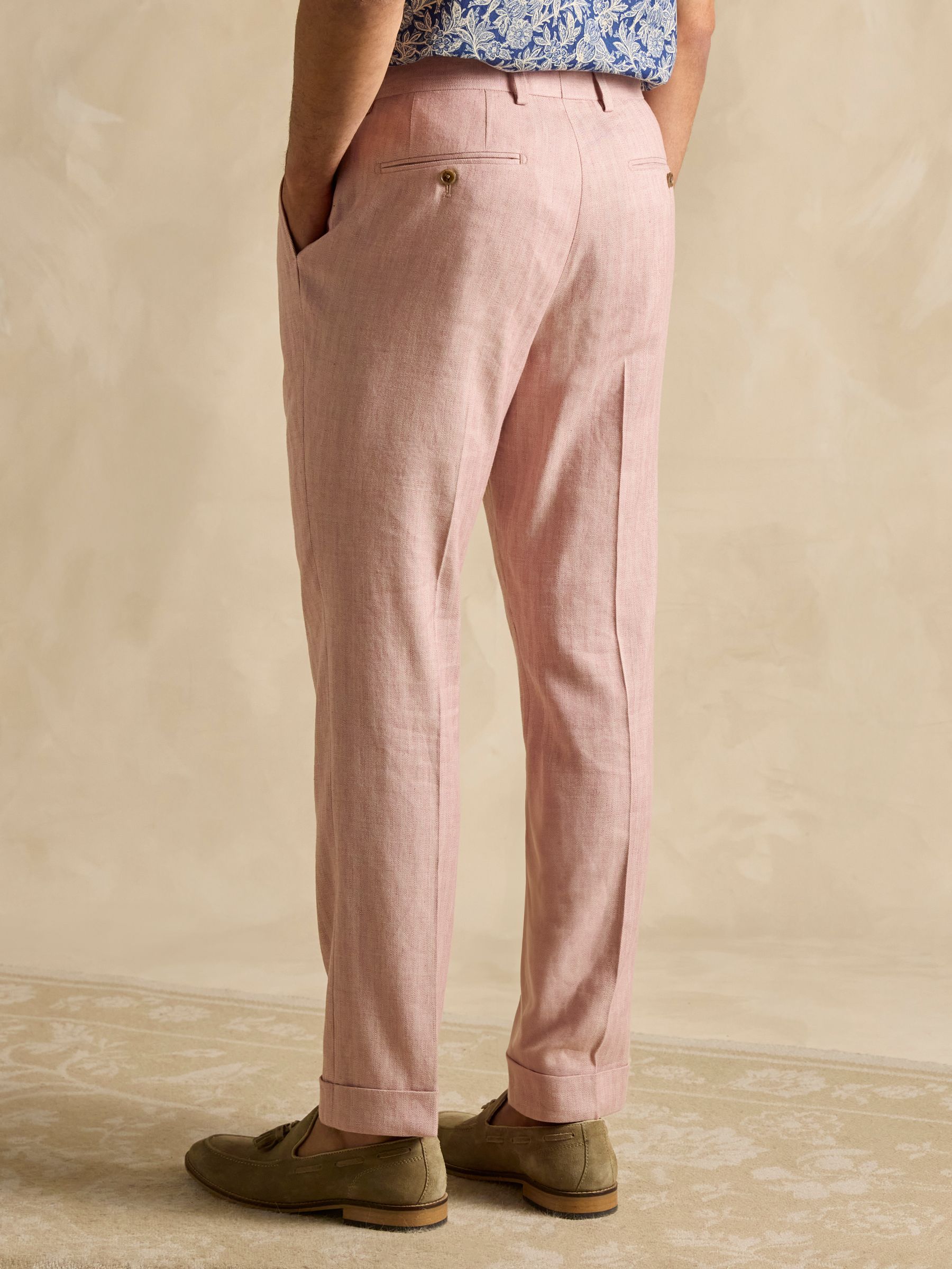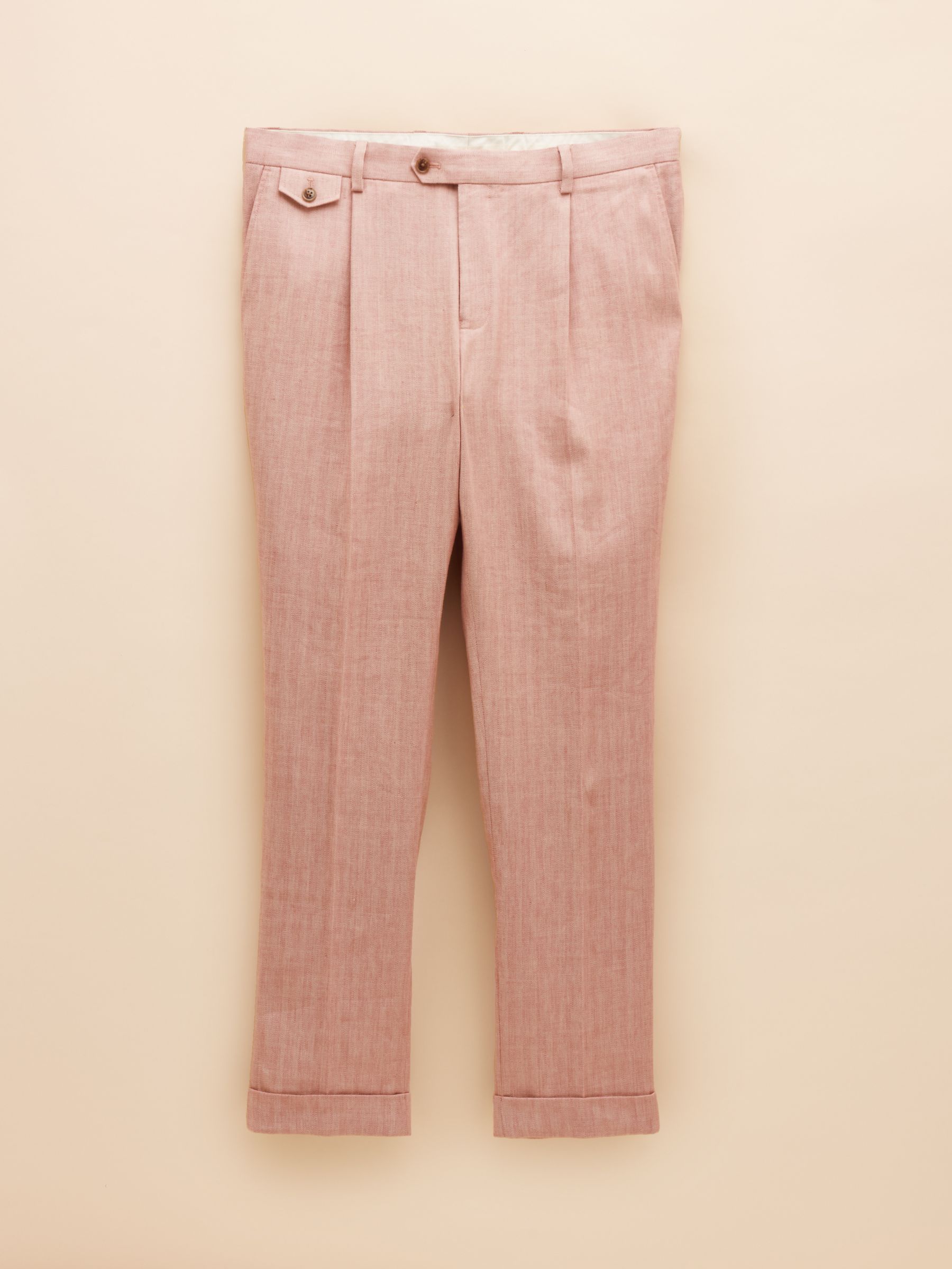 Since the 1960s, Nova Fides has been based in the Prato textile district, creating fine weaves and fabrics for Men's clothing. Attend those summer events in style and comfort with a pair of linen trousers. Cut from 100% Italian linen, these are an enduring style that will live long in your wardrobe. They have a tapered fit through the leg, turn-up cuffs, belt loops and a single pleat through the leg for a polished look. Finished with side pockets and two welt pockets with buttons to the rear. Pairing them with the matching linen blazer is always the best choice for formal occasions, but can easily be styled with a cotton T-Shirt or linen shirt to achieve a smart casual look. Half lining Lapel collar Double welt pockets Kissing buttons to the cuffs