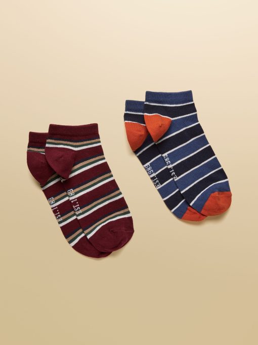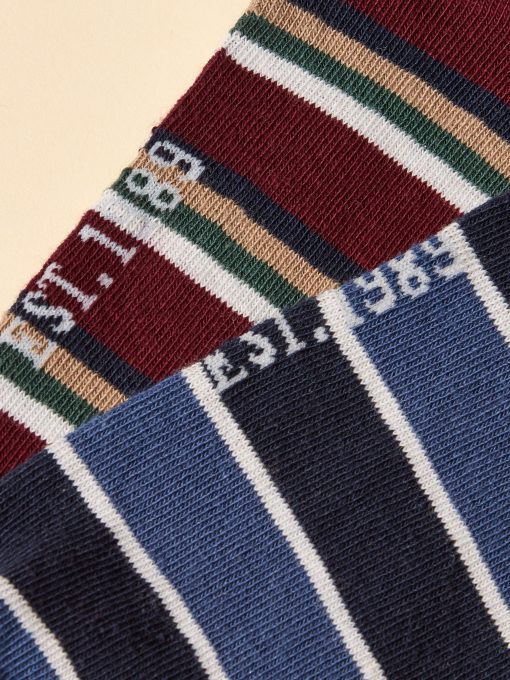 Crafted from a light and airy cotton-rich material, this pack of two trainer socks makes for a comfy, everyday essential. Each pair features a striped design with contrasting heel and toe. They also make a great gift for anyone who is always losing their socks. Pack of two Trainer socks Striped Contrast heel and toe Intarsia Joules branding to the sole