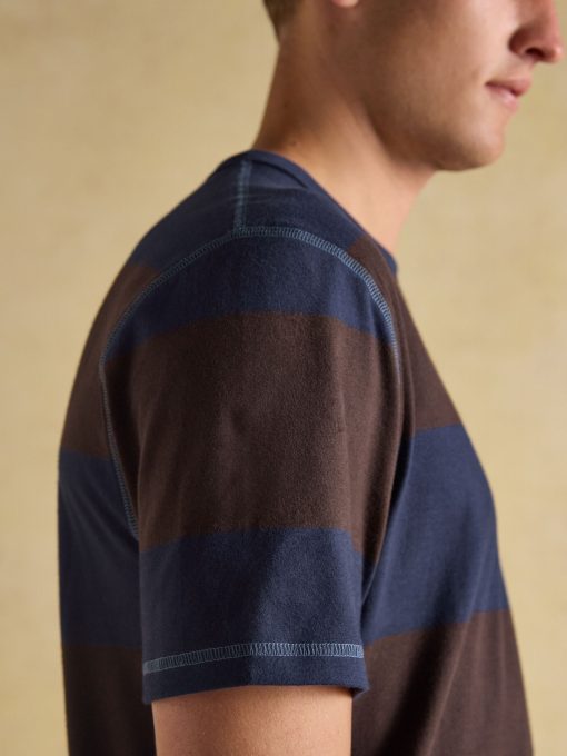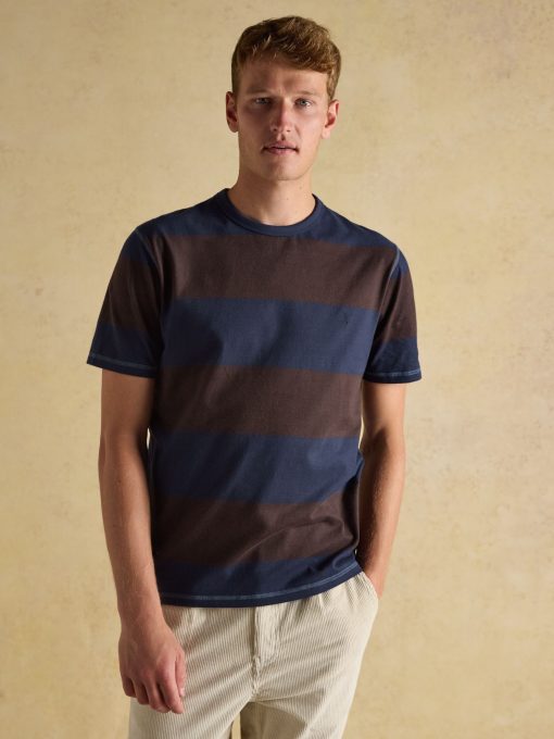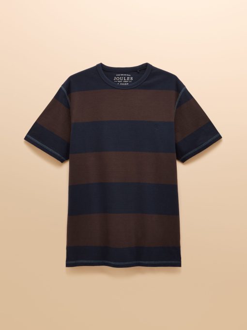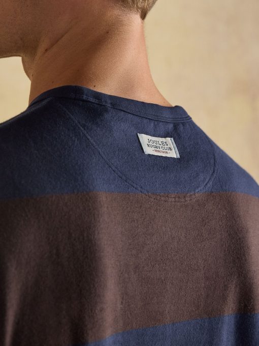 Joules Men’s Rugby Club Brown/navy Crew Neck Cotton T-shirt | Brown & Navy