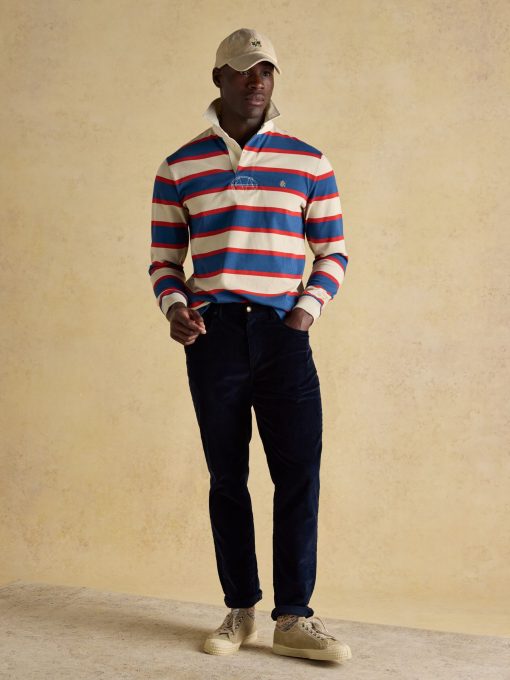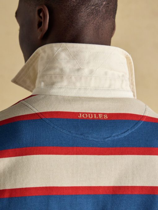 An iconic style that has lived long in men's wardrobes, the Onside rugby shirt carries a preppy yet sporty look.It features the hallmarks of a traditional rugby shirt including a heavyweight cotton jersey construction, a concealed placket with rubber buttons, a pointed twill collar with undercollar stitching and wide and thin contrasting horizontal stripes.Crafted with premium fabric, it's a hardwearing style that will be part of your off-the-field attire for a long time.It's finished with Joules Rugby Club embroidery to the chest, side splits, ribbed cuffs and reinforced top stitching to the placket. Pick it up in an assembly of colours.Cotton Heavyweight jersey Twill collar with undercollar stitching Concealed button placket Traditional rubber buttons Side splits Ribbed cuffs Joules Rugby Club embroidery to the chest Striped