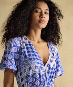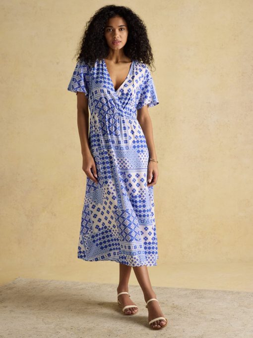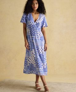 You can't go wrong with a wrap dress and ours is so flattering and chic. Artfully patterned, the Adele is crafted with an elegant wrapped v-neck and flows to the ankle while cinching at the waist. Topped with airy short sleeves, we expect this to be a summer favourite in your wardrobe. Ankle length Wrap effect at front V-neck Short sleeves Patterned Elasticated waist