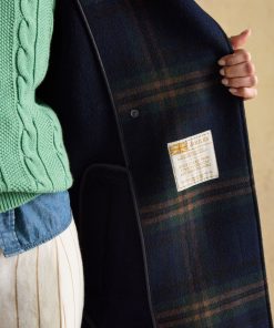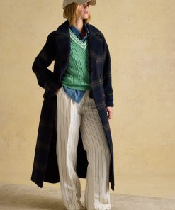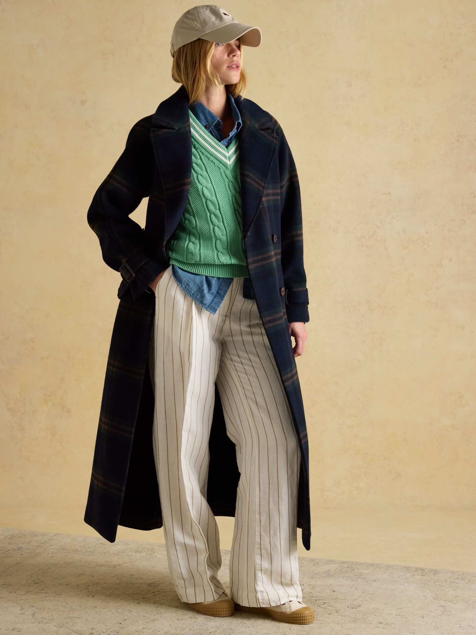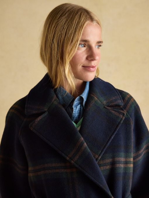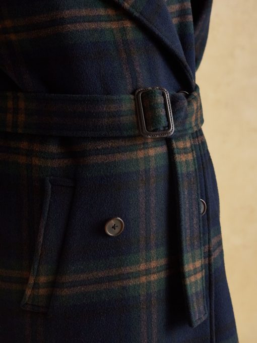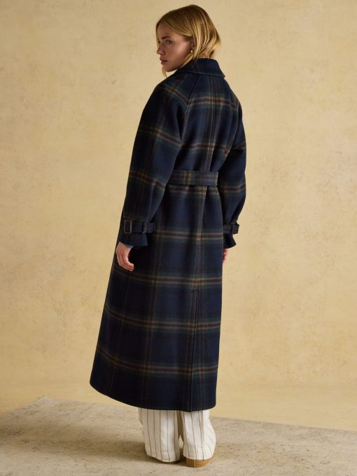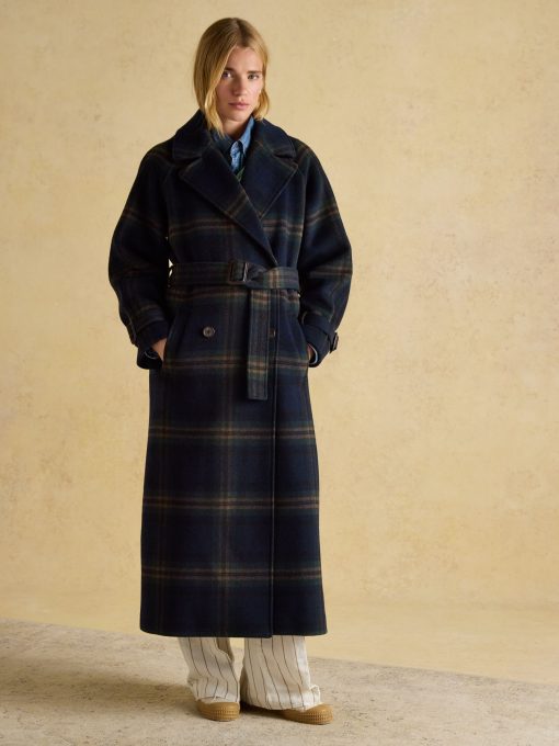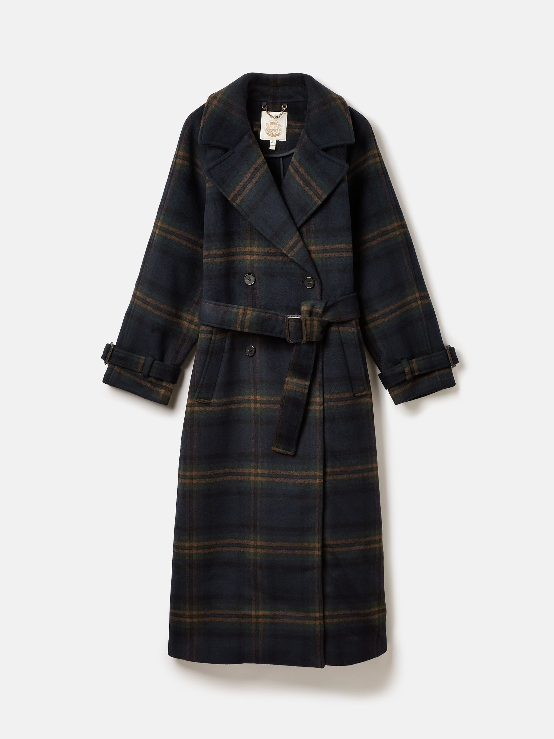 With navy coat season upon us, and likely set to stay for a long while, investing in a piece you'll never tire of wearing is a wise choice. The Amberley is elegant, sophisticated and crafted from true quality that can be felt through its heavyweight, wool blend fabric and seen through the craftsmanship. Its longline design provides ample coverage from the chill, while the raglan sleeves create a slightly relaxed feel allowing room for layers beneath. Classic details that are both practical and stylish include a double-breasted fastening with faux horn buttons, a lapel collar and a belt to create a flattering cinched effect at the waist. The adjustable cuffs and belt feature faux leather buckles for an elevated look. It's finished with front slip-in pockets, a back vent and a double-faced fabric lining. Love it for this winter and forever. Heavyweight wool blend – perfect for the winter season Longline length Classic lapel collar Raglan sleeves for a relaxed look Double-breasted with two functional and two fixed faux horn buttons Adjustable belt secured with belt loops for cinching the waist Front slip-in pockets Faux leather trims Adjustable cuffs Vent to the back Double cloth lining
