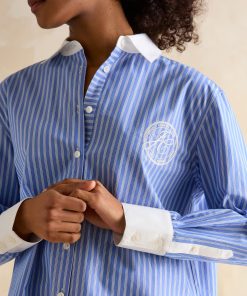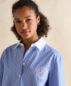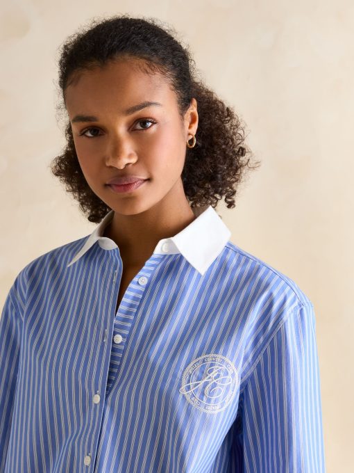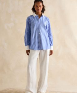 This is our best-loved Amilla shirt, cut from a new cotton poplin fabric for the lighter and brighter months. It has a relaxed fit, a longline shape (that covers the bum), and a flattering curved hem. Its button down fastening offers versatility when it comes to styling – button it up and tuck it into a pair of wide-leg jeans, or throw it unbuttoned over a swimsuit for an effortless beach look. Cotton poplin is characterised by its lightweight feel and smooth soft finish, making it perfect for the warmer weather. It's finished with button cuffs, a hanging loop to the reverse and a box pleat detail at the back. Longline shape Relaxed fit Curved hem Button-down fastening Collar Button-down cuffs Hanging loop to the reverse Box pleat detail to the back