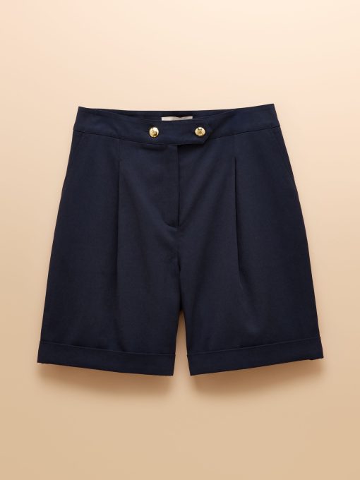 Our Bay shorts are one of those pieces that will elevate any look. Chic and sharp, they're cut to a flattering tailored fit that sits on the waist and falls to the knee. Inspired by summer, this pair are crafted from a lightweight fabric that's finished with handy pockets and double-button detailing. Team these with a crisp white shirt or a T-shirt for a stylishly refined finish. Tailored fit Long length Two buttons Pockets