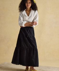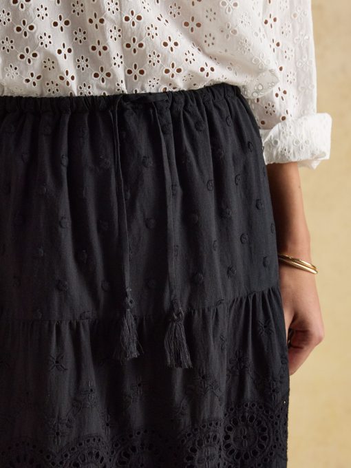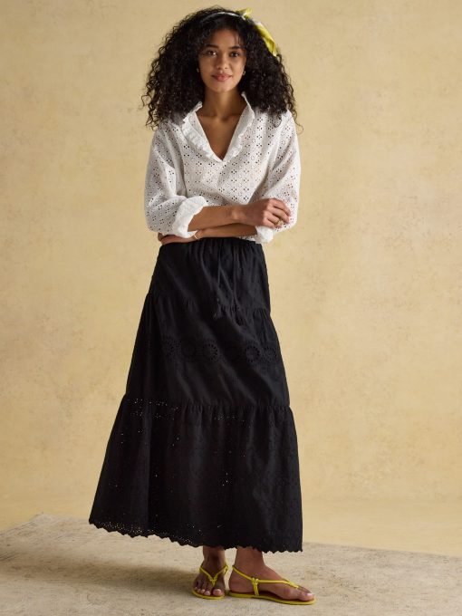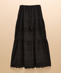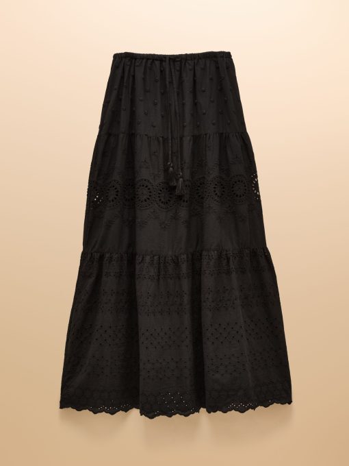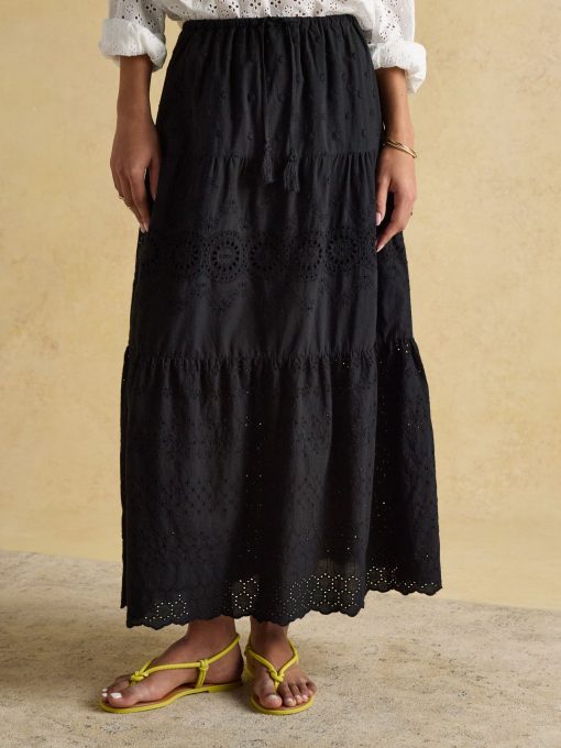 Get summer ready with our versatile maxi skirt that can be styled in multiple ways. Crafted from cotton to a relaxed fit, it cascades to your ankle and features detailed broderie tiers and scalloped trims. To finish, this airy piece is lined to the knee and can be cinched at the waist with adjustable ties. Cotton broderie Maxi length Relaxed fit Tiered Scalloped trims Lining up to the knee Ties at the waist