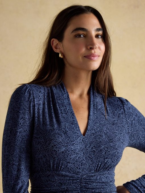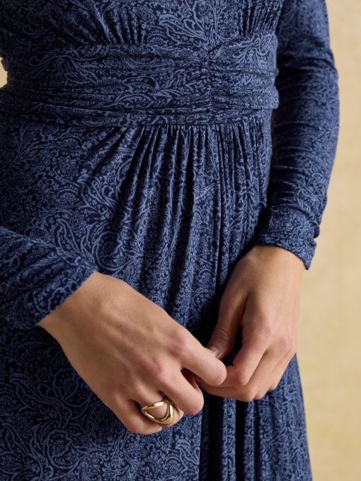 A timeless piece that you'll continue to reach for. We introduce our Mina dress. Crafted to a classic fit, it elegantly cascades to the floor and features a ruched waist that works to cinch and sculpt your silhouette. Crowned with a V-neck and long sleeves, it's super versatile and would be suitable for many occasions. Maxi length Ruched waist V-neck Long sleeves
