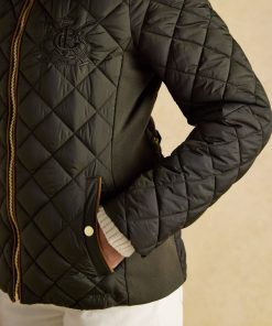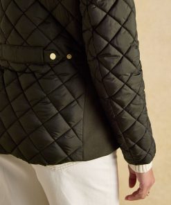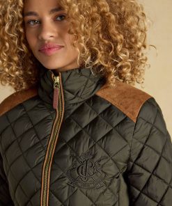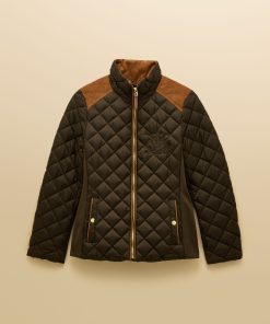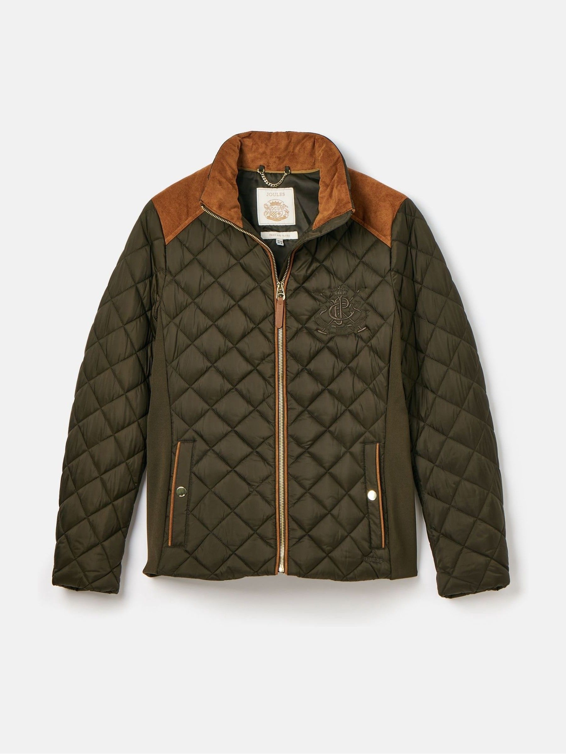 A true celebration of our rural heritage and style, this coat goes the extra country mile. Showerproof (meaning a little rain won't stop play) and in a traditional diamond quilt pattern, it comes in a flattering silhouette and is home to well-considered detail and functional features. Suedette details offer a little change in texture, the intricate crest embroidery is a reminder of the quality and craft and the quilted back belt is further proof that this coat is more than just a coat – it's an expression of true countryside style. Showerproof Diamond quilted Funnel neck with suedette lining Zip fastening Suede on shoulders Crest embroidery Adjustable back belt Front pockets with popper fastenings Curved hem with lower back
