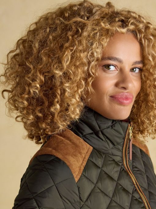 A true celebration of our rural heritage and style, this coat goes the extra country mile. Showerproof (meaning a little rain won't stop play) and in a traditional diamond quilt pattern, it comes in a flattering silhouette and is home to well-considered detail and functional features. Suedette details offer a little change in texture, the intricate crest embroidery is a reminder of the quality and craft and the quilted back belt is further proof that this coat is more than just a coat – it's an expression of true countryside style. Showerproof Diamond quilted Funnel neck with suedette lining Zip fastening Suede on shoulders Crest embroidery Adjustable back belt Front pockets with popper fastenings Curved hem with lower back