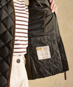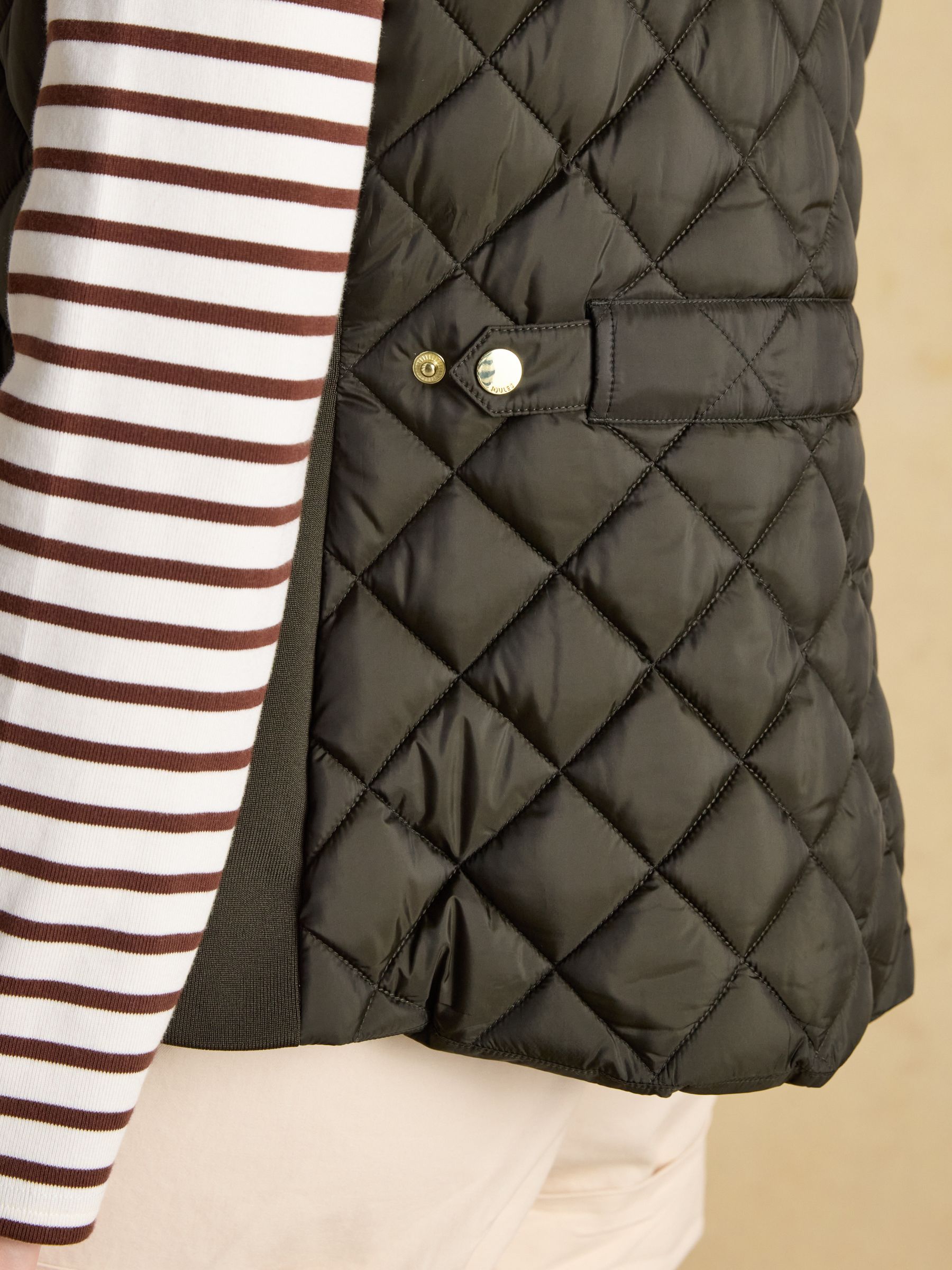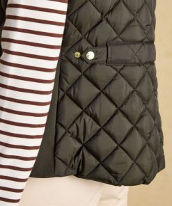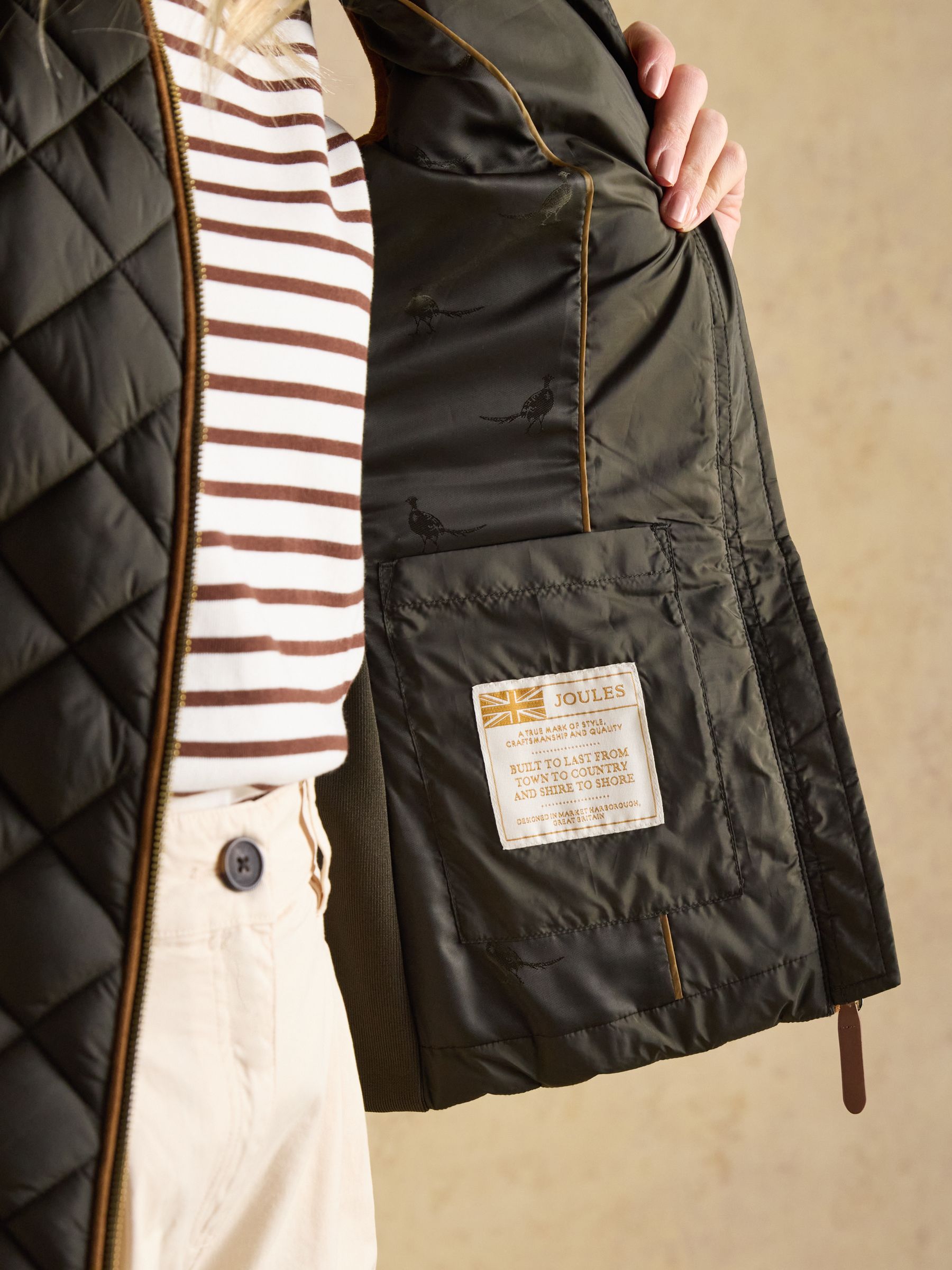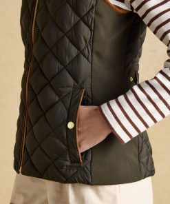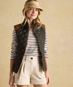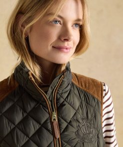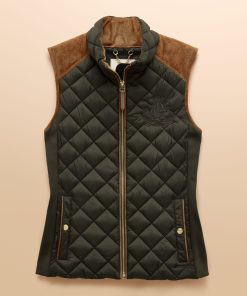 A true celebration of our rural heritage and style, this gilet in navy really does go the extra country mile. Showerproof (meaning a little rain won't stop play) and in a traditional diamond quilt pattern, it comes in a flattering silhouette and is home to well-considered detail and functional features. Suedette details offer a little change in texture, the intricate crest embroidery is a reminder of the quality and craft and the quilted back belt is further proof that this gilet is more than just a gilet – it's an expression of true countryside style. Showerproof Diamond quilted Funnel neck with suedette lining Zip fastening Suedette on shoulders Crest embroidery Adjustable back belt Front pockets with popper fastenings Curved hem with lower back