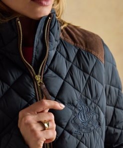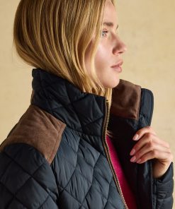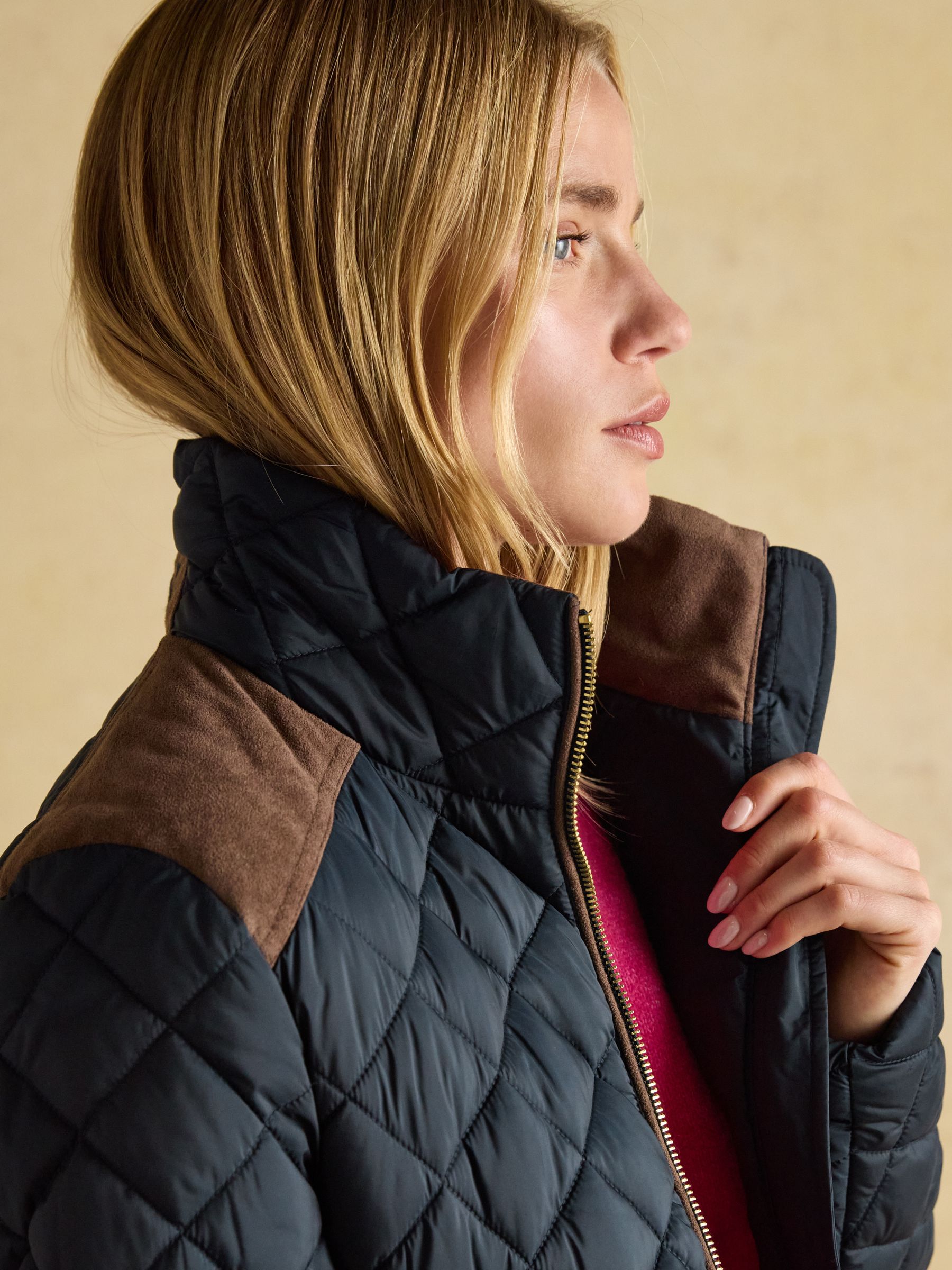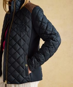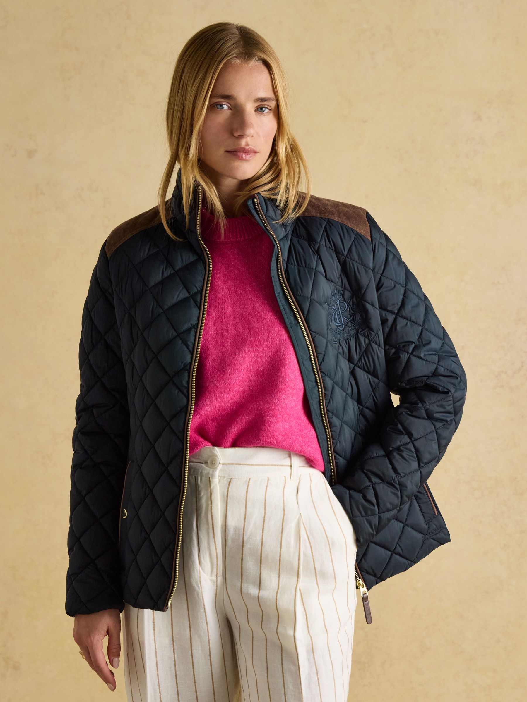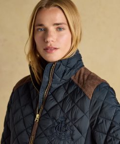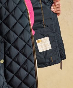 Joules Women’s Braemar Luxe Navy Blue Showerproof Diamond Quilted Coat | Navy Blue